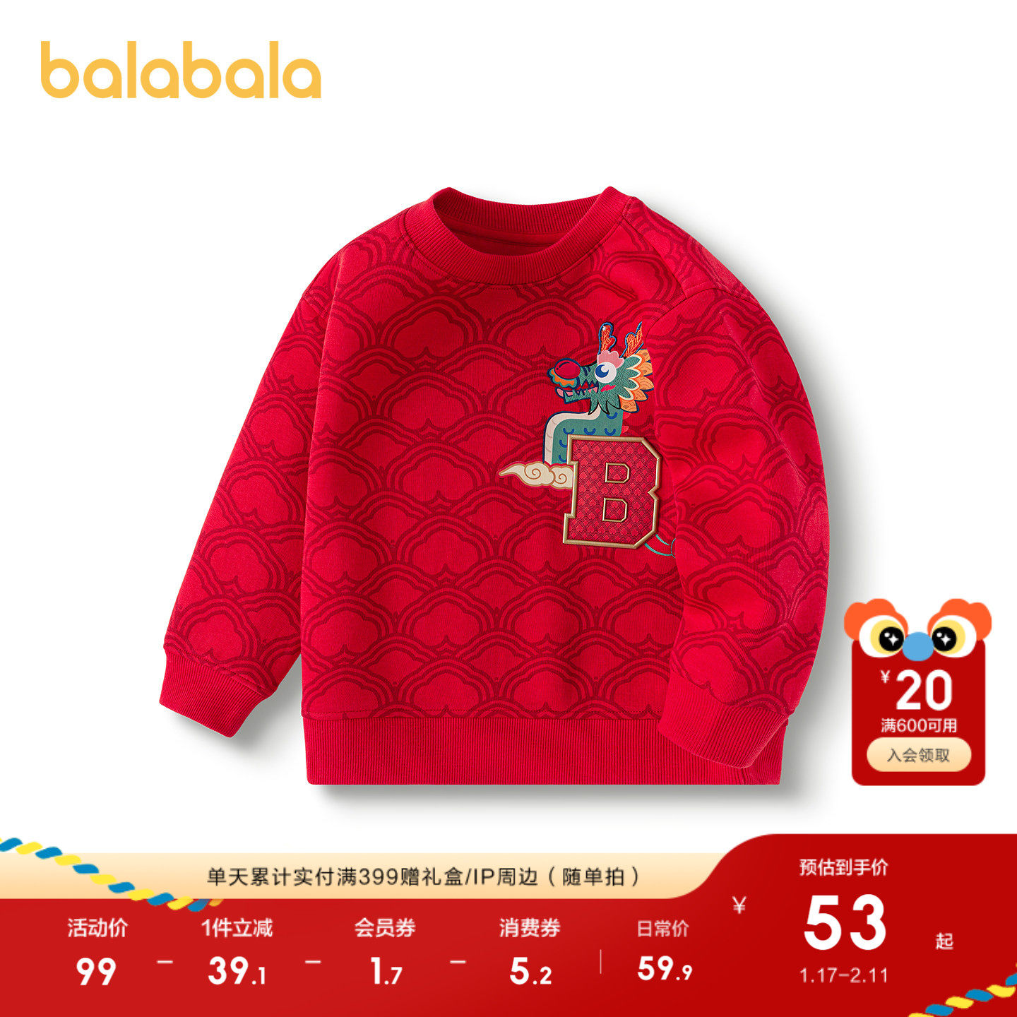 巴拉巴拉童装男童卫衣儿童新款秋冬装时尚洋气春装新年红色拜年服