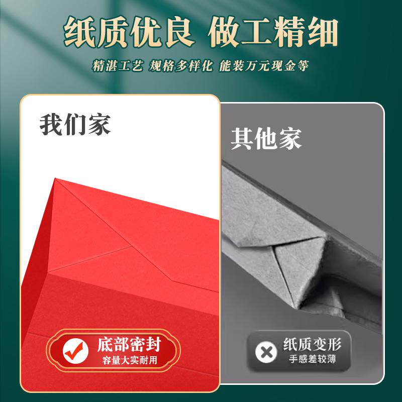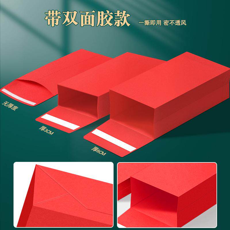 红包信封装现金过年红色信封袋自粘封口大红纸面空白新年无字红包袋万元存放袋慰问金年会年终奖送钱奖金钱袋