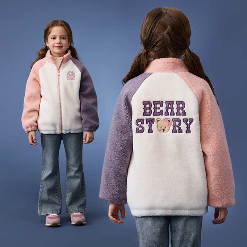 PawinPaw卡通小熊童装25年秋冬新款男女童保暖撞色户外毛绒外套