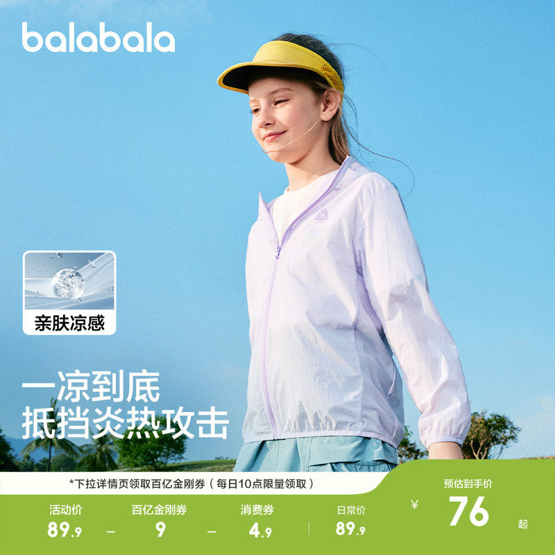 巴拉巴拉童装儿童防晒衣男童外套女童衣服夏装皮肤衣时尚百搭洋气