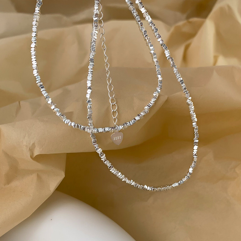 珀姿卡999纯银女碎银子项链轻奢小众叠戴锁骨链裸链高级颈链足银