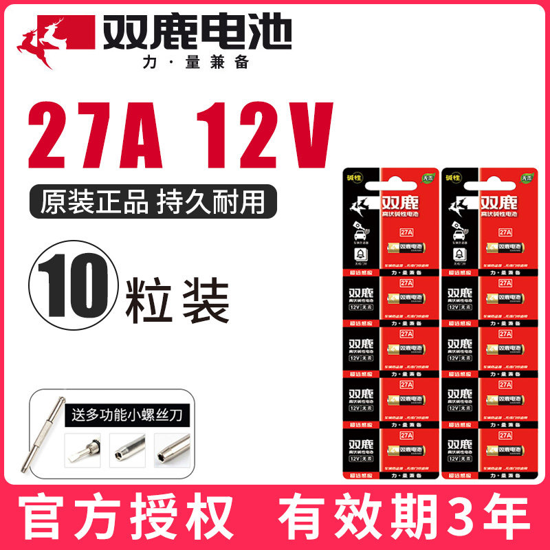 双鹿27A电池12V碱性汽车车库门铃遥控器点读笔报警器防盗器 10粒