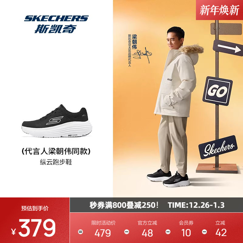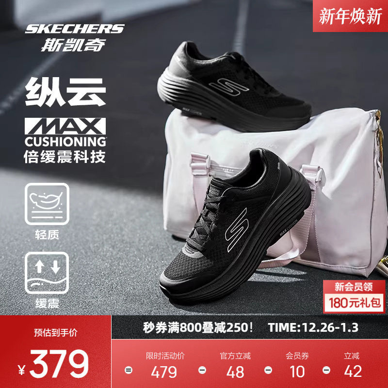 斯凯奇纵云跑鞋男女同款情侣鞋黑色运动鞋减震透气散步跑步休闲鞋