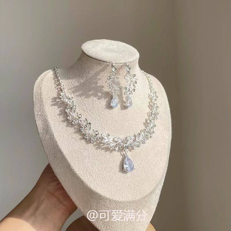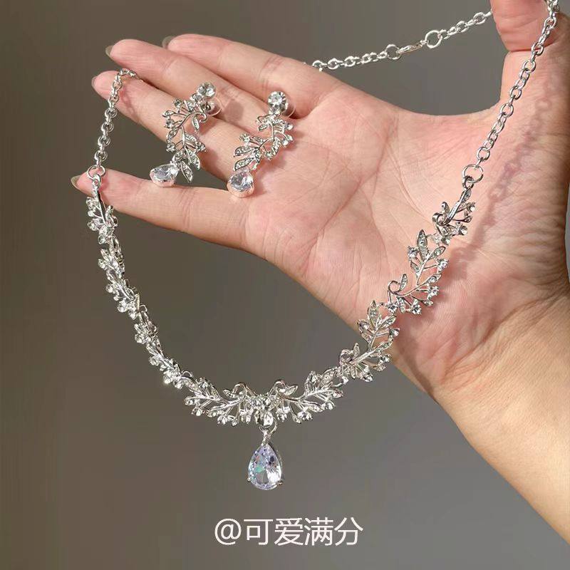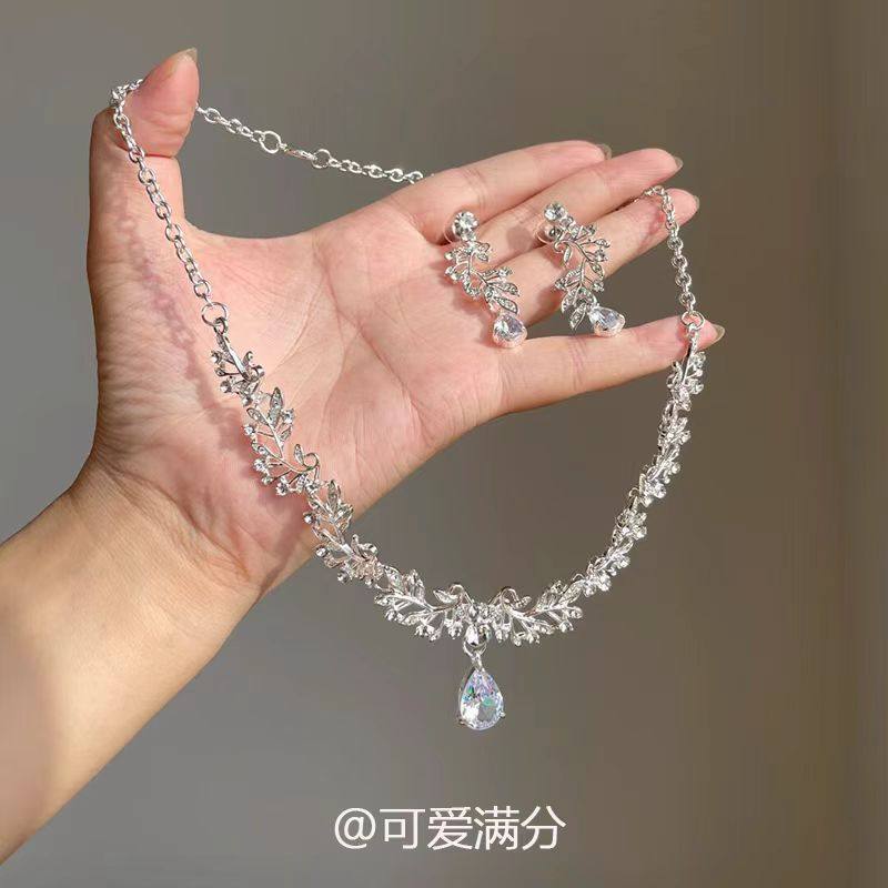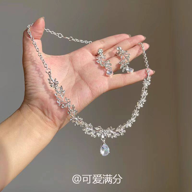 「滴雨泪珠」宫廷风爆闪锆石水滴树叶项链清冷感精致轻奢锁骨链