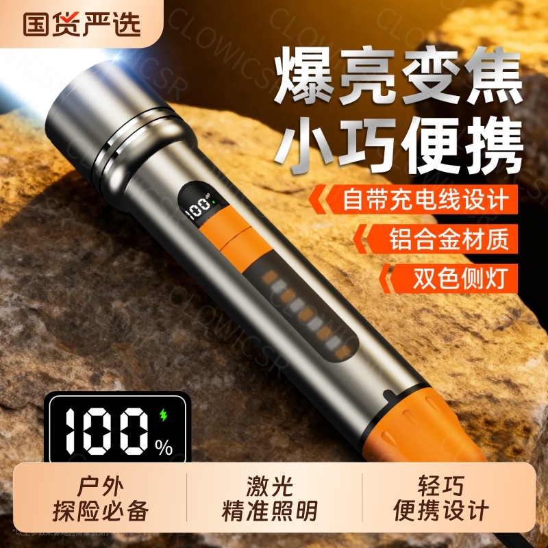 硕森超亮手电筒强光充电户外激光家用小型迷你便携耐用多功能远射