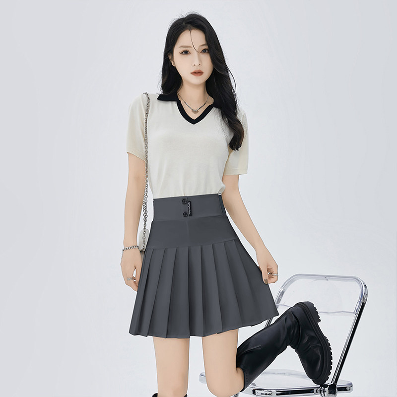 ONE MORE松紧腰百褶裙女2025秋款防走光弹力高腰显瘦半身裙a字裙