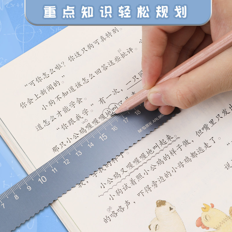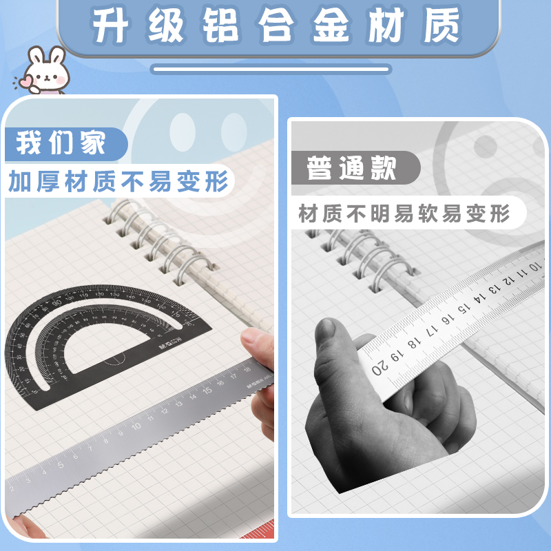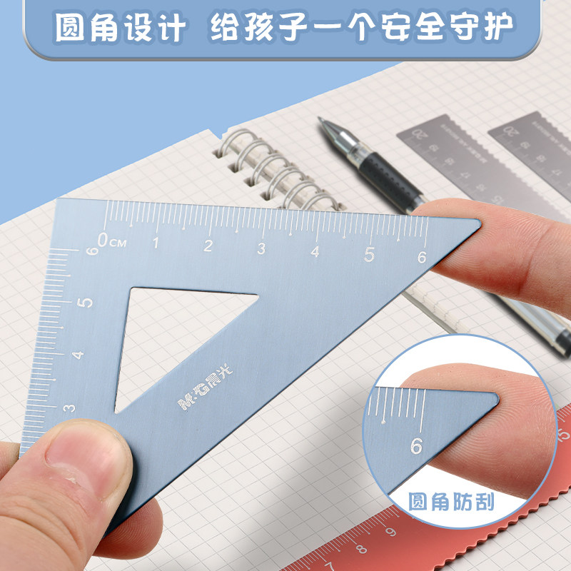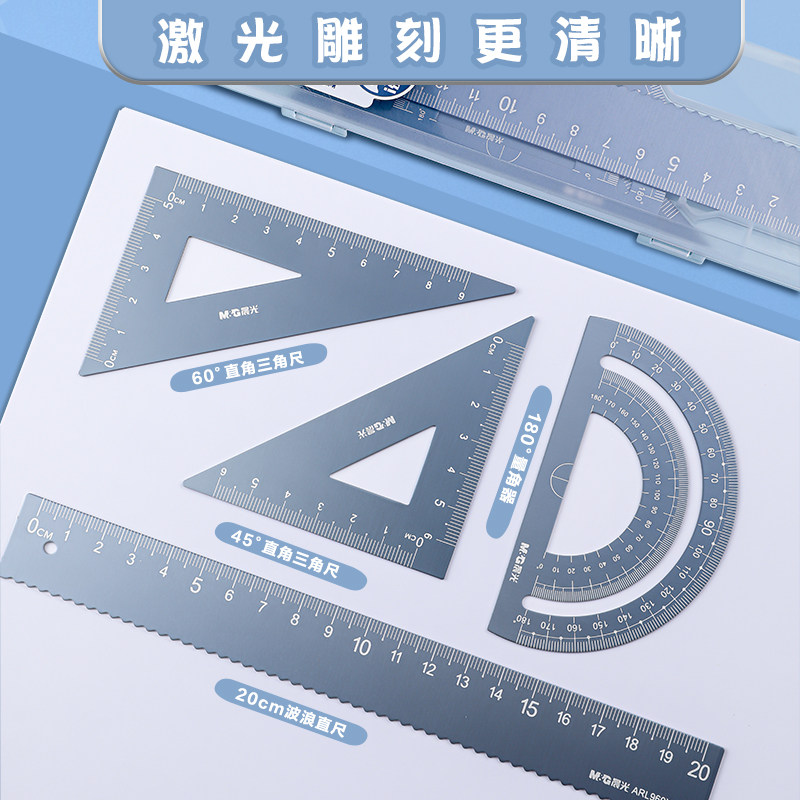 晨光铝合金套尺20cm学生专用考试多功能套尺15cm绘画测量四件套高颜值直尺三角板量角器带波浪线金属尺子文具