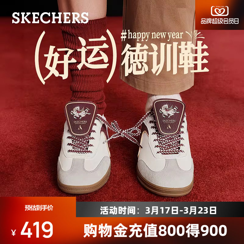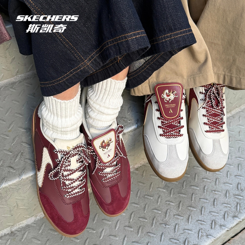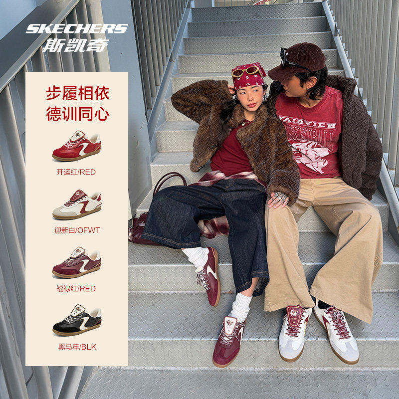 斯凯奇闪穿德训鞋2026新品好运红色复古板鞋男女同款潮流低帮鞋