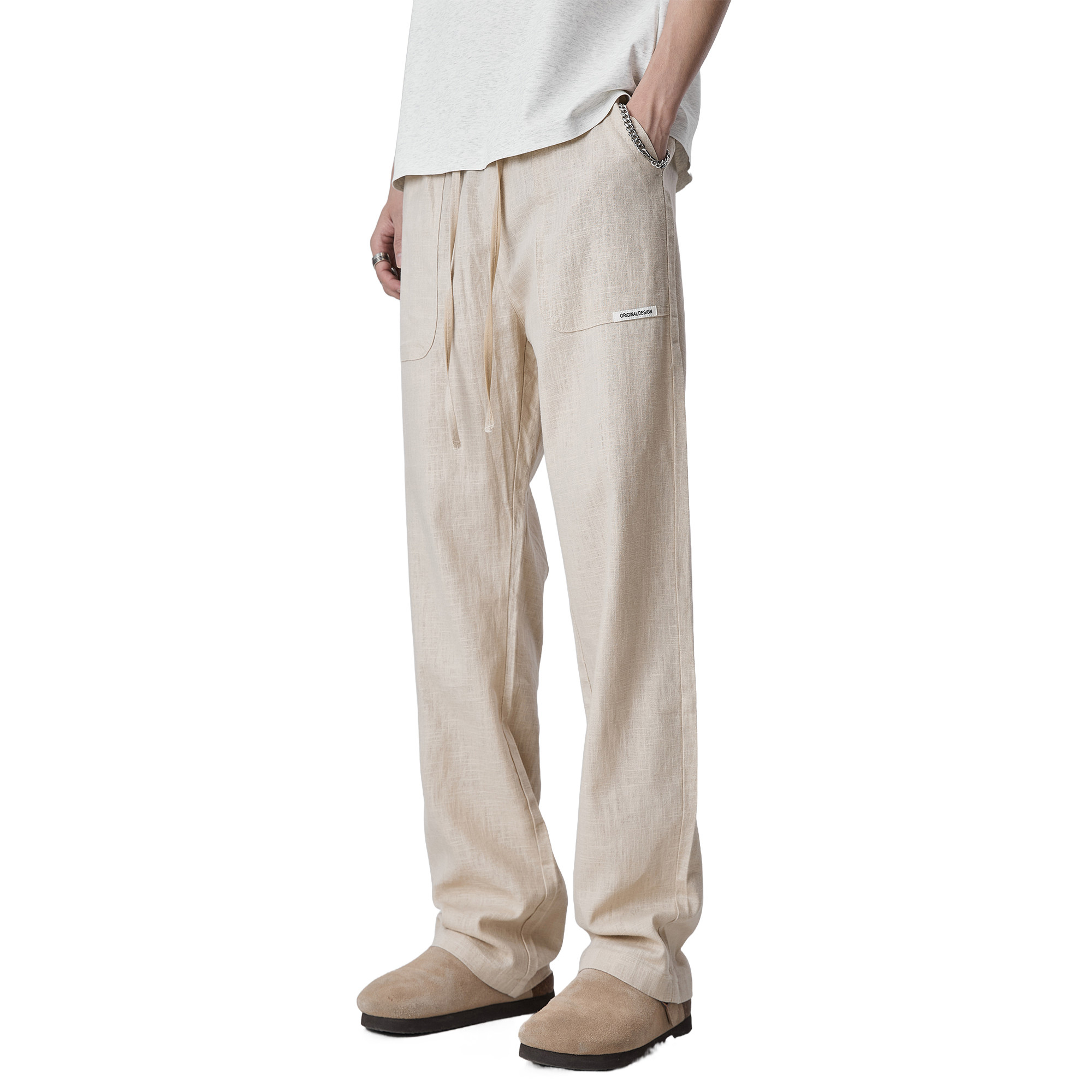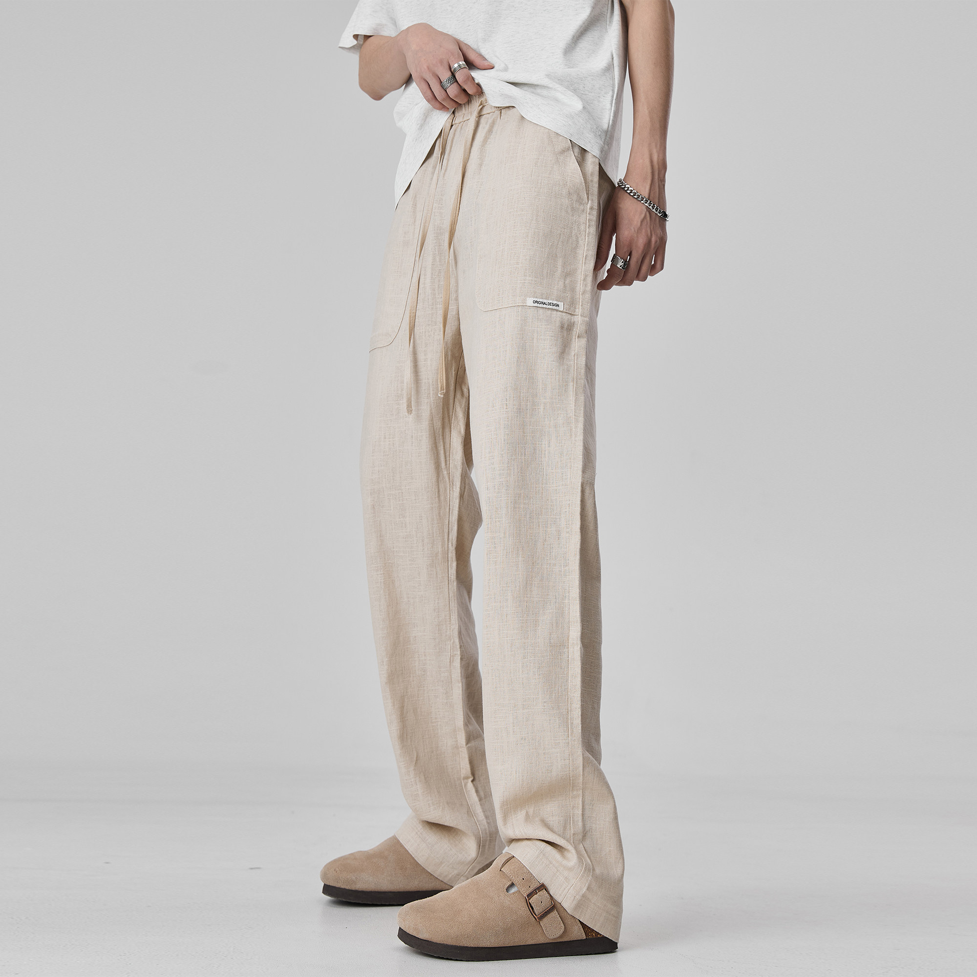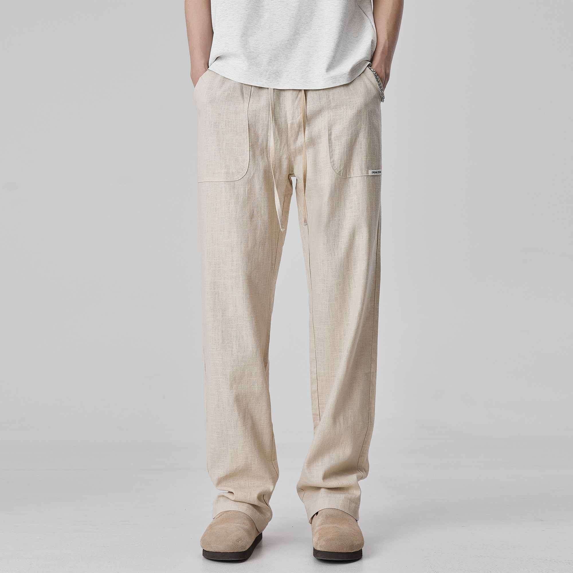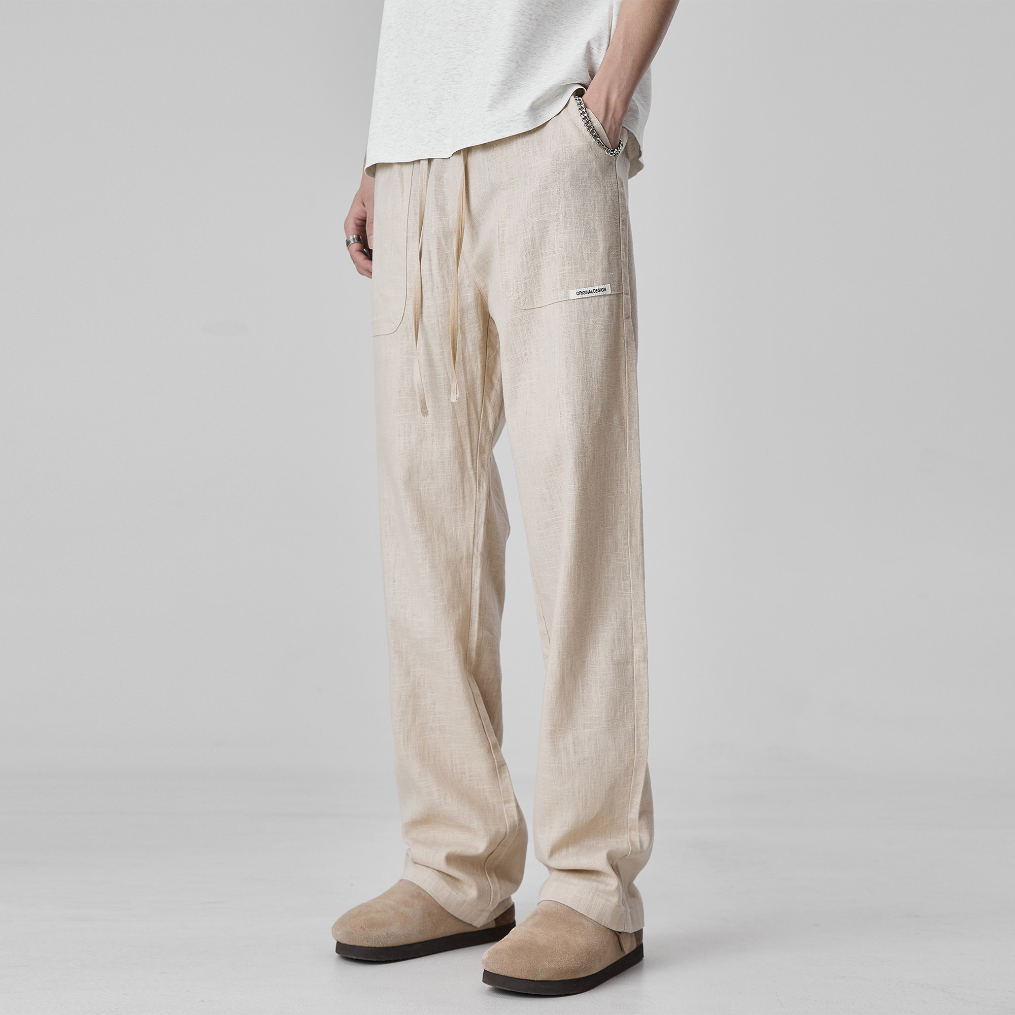 ALLIN 潮牌棉麻休闲裤男夏季薄款透气垂感宽松直筒裤纯色简约裤子