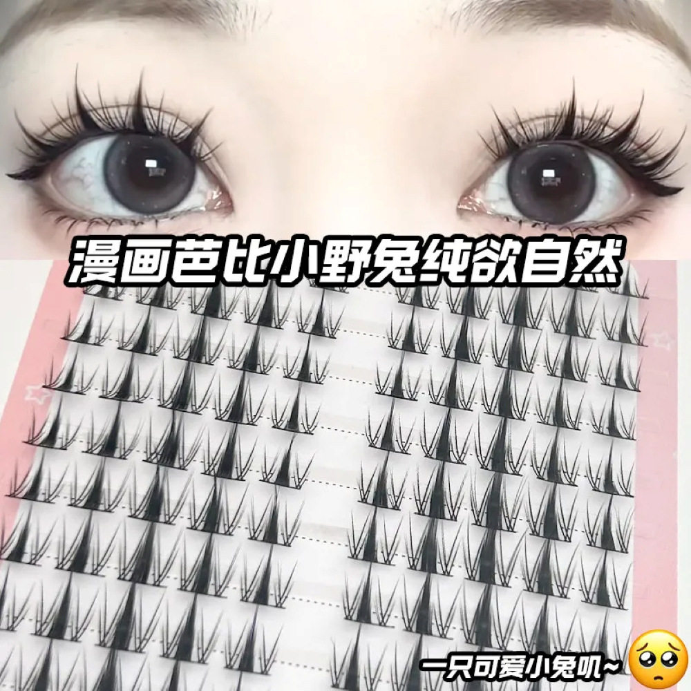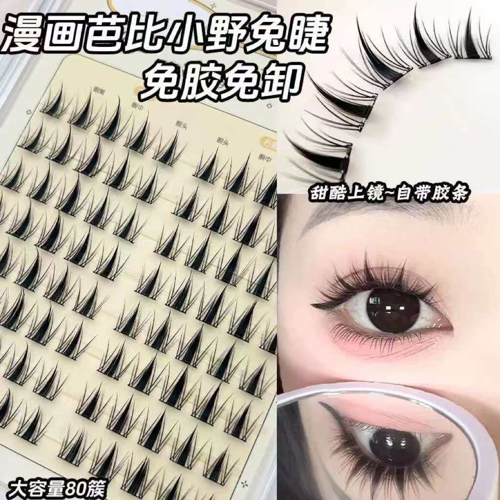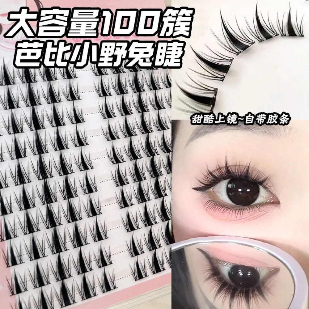 免胶芭比小野兔假睫毛小恶魔睫毛漫画自然仿真超软妈生感胶水镊子