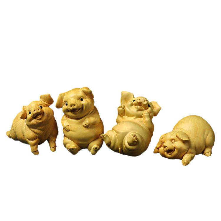 厂家黄杨木雕家居客厅猪摆件文玩工艺品汽车饰品四喜猪