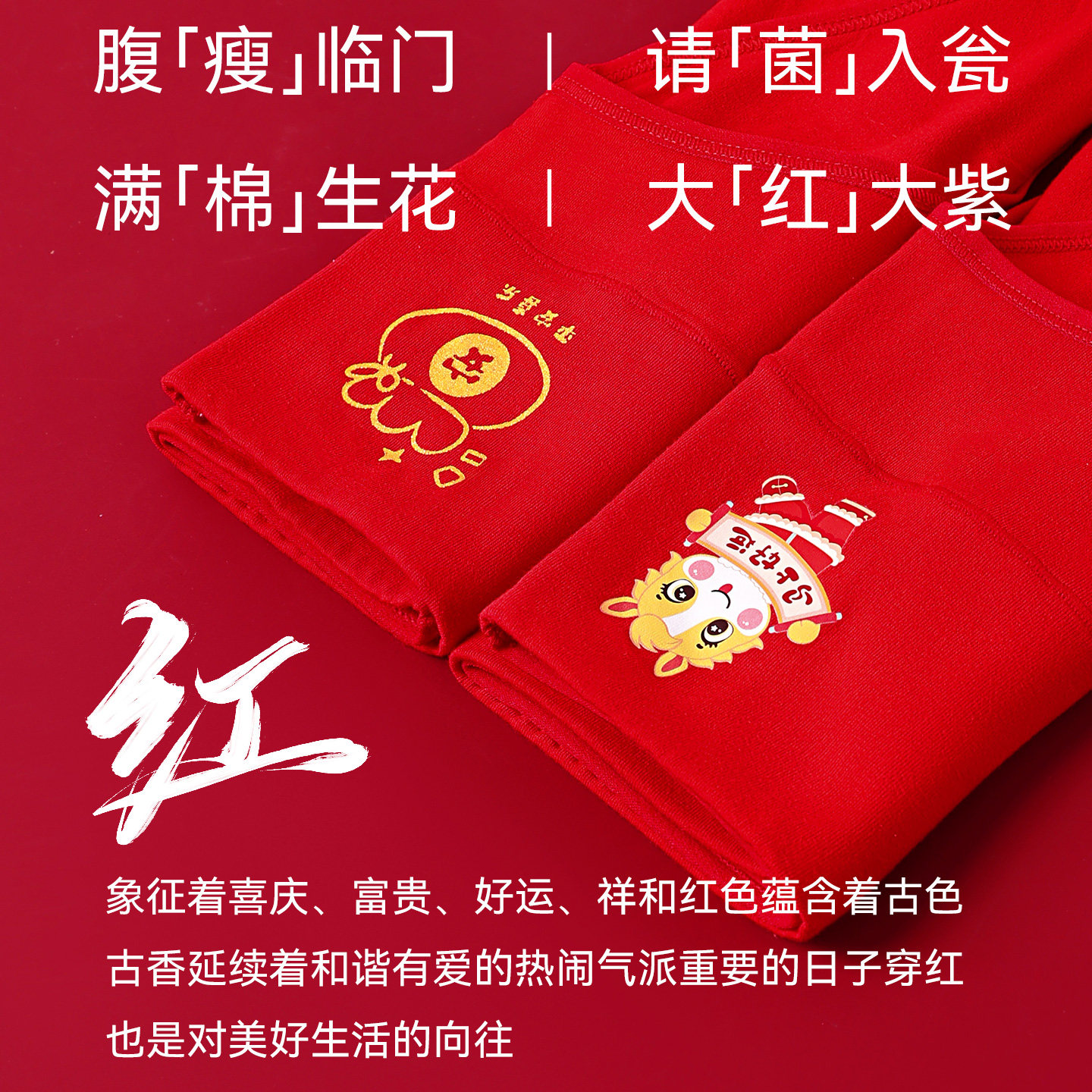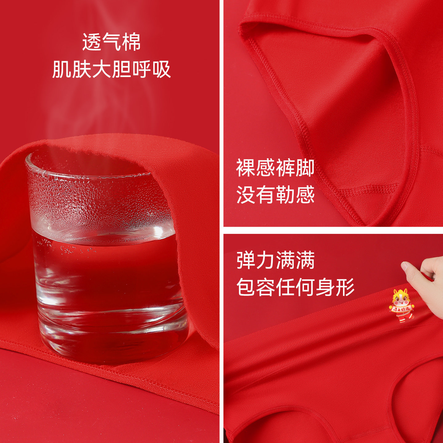 浪莎马年本命年大红色内裤女士纯棉全棉抗菌属马高腰收腹2026新款