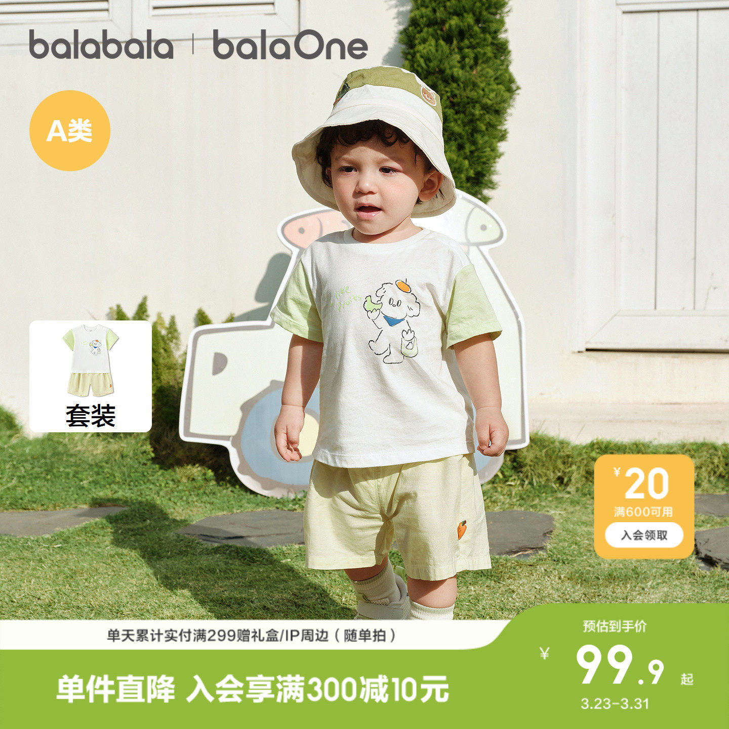 巴拉巴拉童装宝宝短袖t恤套装婴儿2026新款春夏装男童女童两件装
