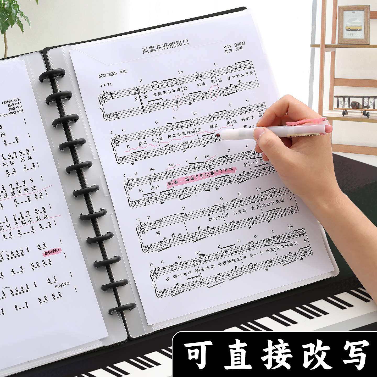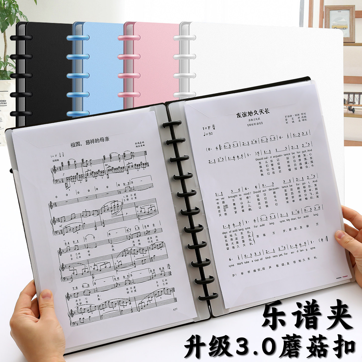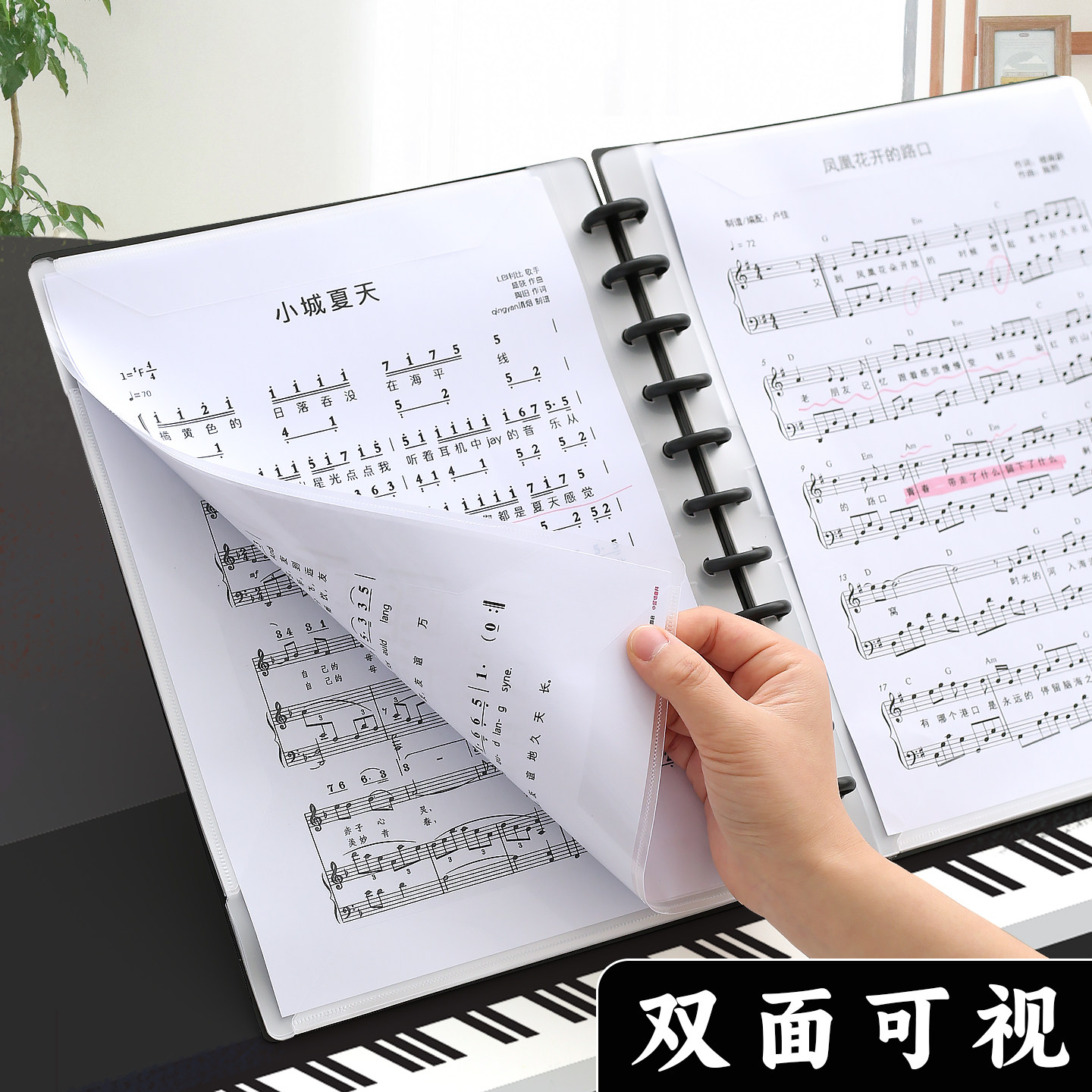 可定制白色a4活页乐谱夹谱夹子不反光可修改黑色展开式音乐吉他谱钢琴谱子合唱歌谱曲谱琴谱夹透明插页文件夹