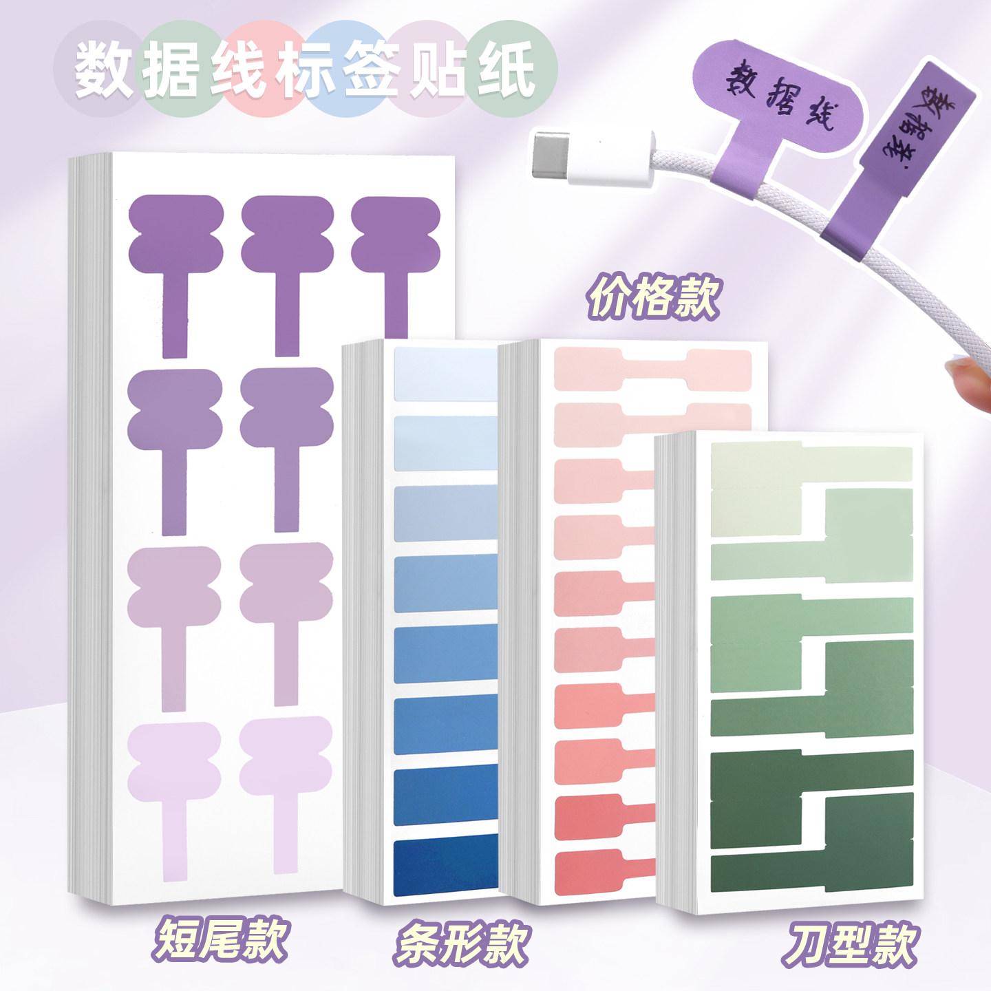 渐变色数据线戒指项链价格标签贴纸珠宝首饰价钱手写不干胶标签贴