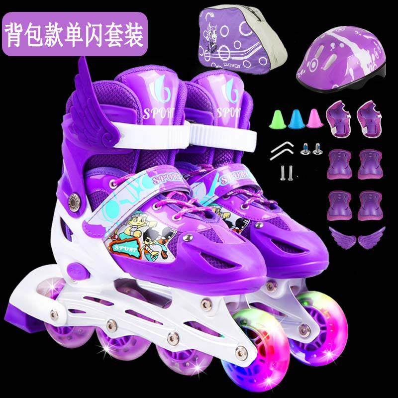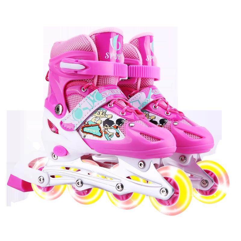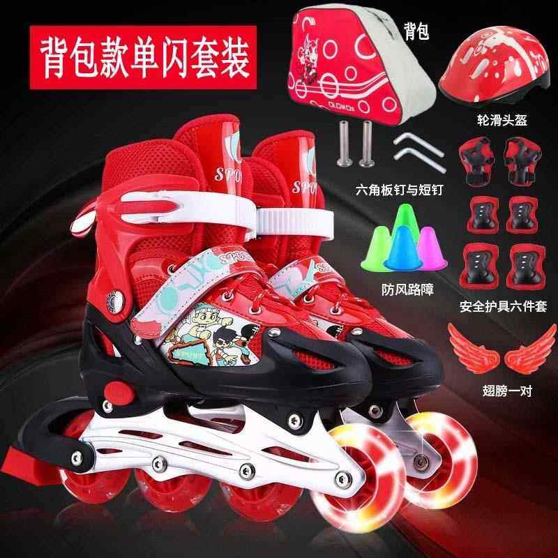 小孩可调直排溜冰鞋 儿童轮滑鞋 特价旱冰鞋单闪PVC套装抖音