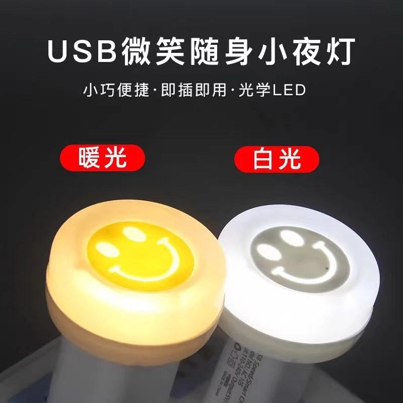 【TJ台纪】 笑脸小夜灯微笑usb氛围睡眠小夜灯宿舍床头led护眼小台灯电脑移动电源随身便携USB灯节能灯小圆灯