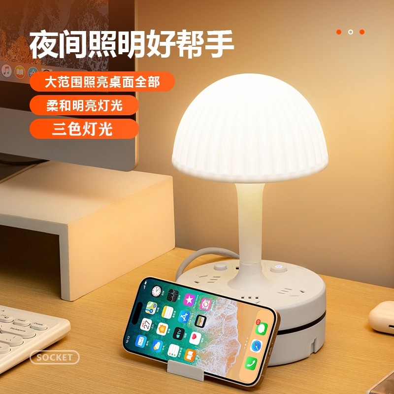 米系台灯床头灯卧室多功能轻奢新款小夜灯婴儿护眼睡眠灯带插座