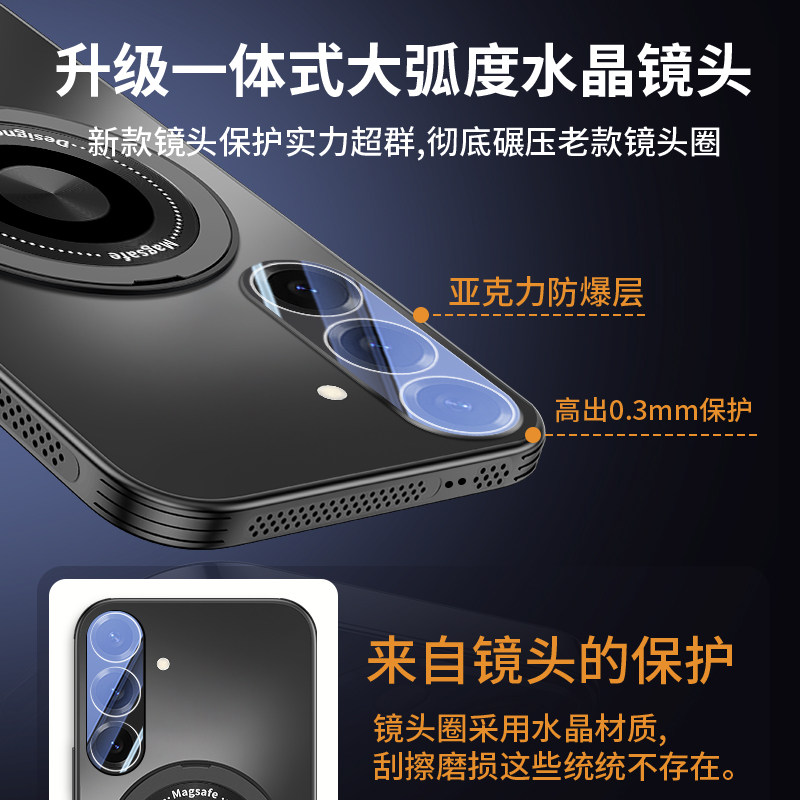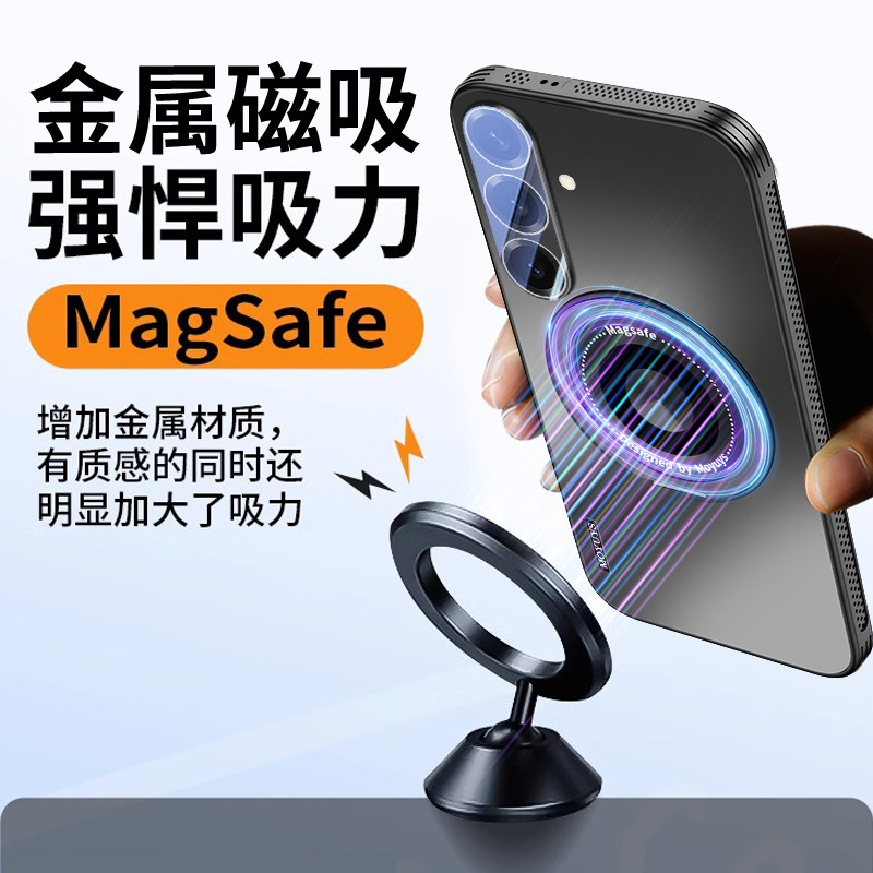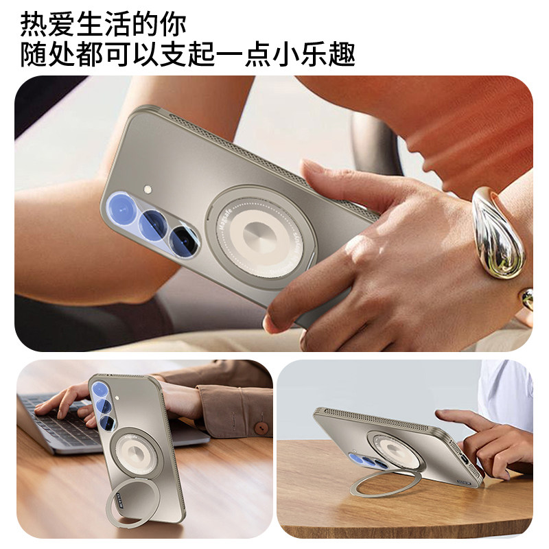 适用三星s25手机壳新款磁吸旋转支架s25+镜头膜全包防摔散热s25ultra高级简约AG磨砂背板男女软边高级感网红