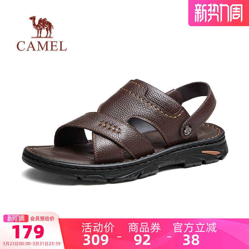 骆驼男鞋2026夏季新款沙滩鞋柔软牛皮透气软弹两穿休闲商务凉鞋男