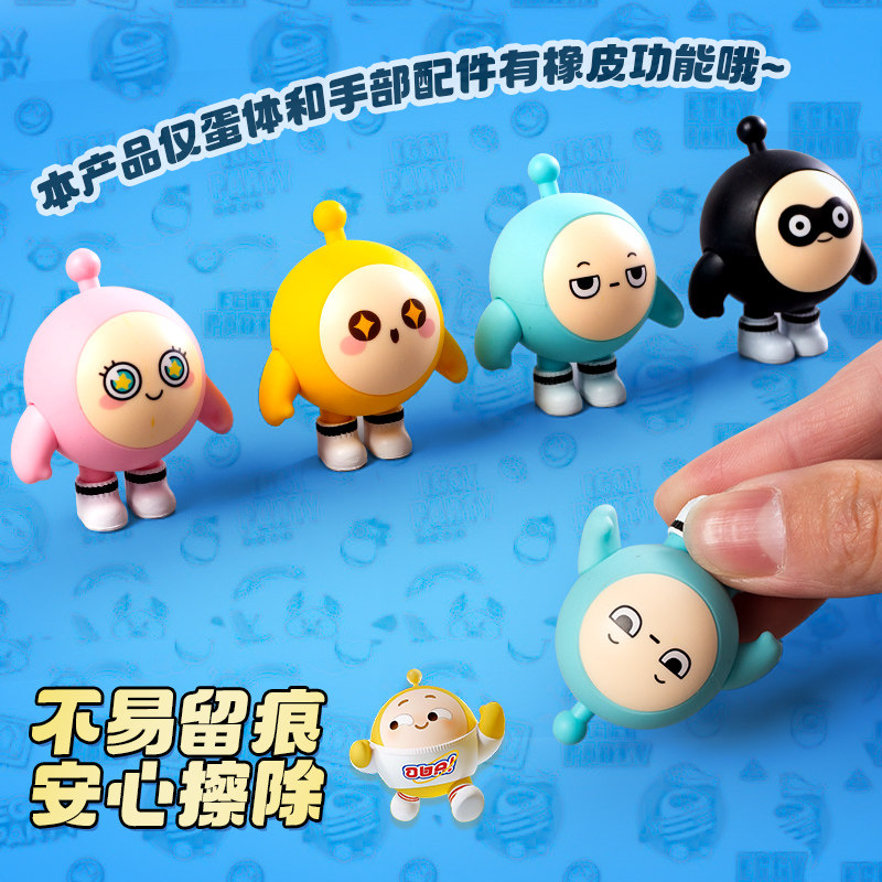 正版蛋仔派对小分队公仔盲盒橡皮擦蛋仔卡片文具周边迷你创意潮玩手办公仔小学生幼儿园专用干净好擦拼装橡皮