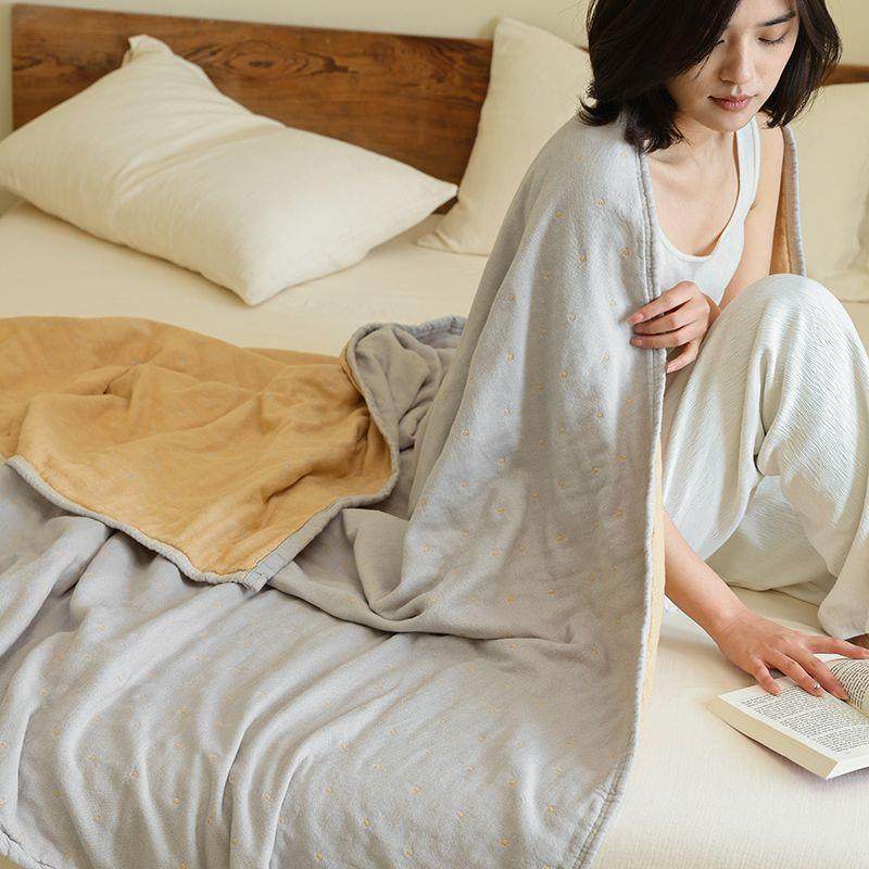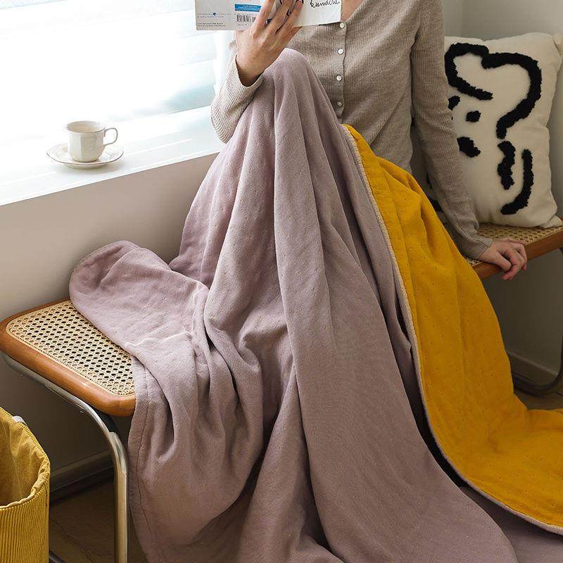 素色双面纯棉纱布四层柔软单双人毛巾被盖毯夏凉被成人全棉睡毯被