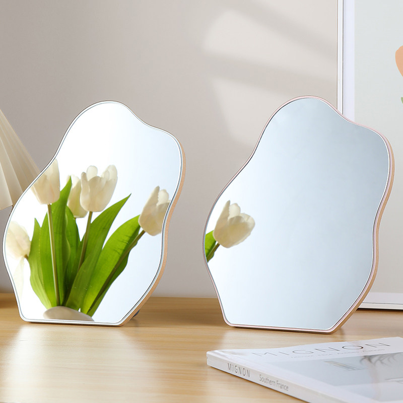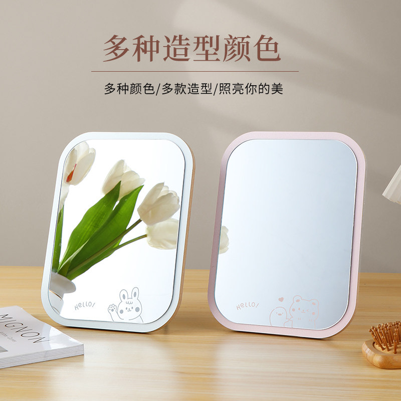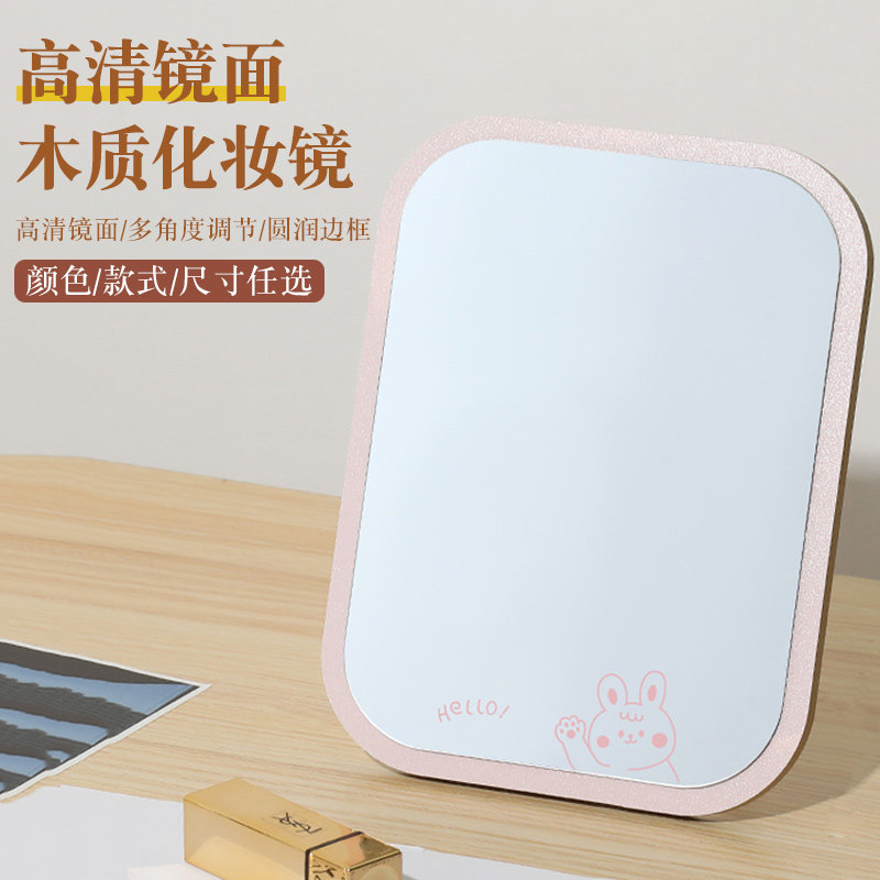镜子化妆镜便携家用桌面台式木质边框学生宿舍梳妆可立折叠小镜子