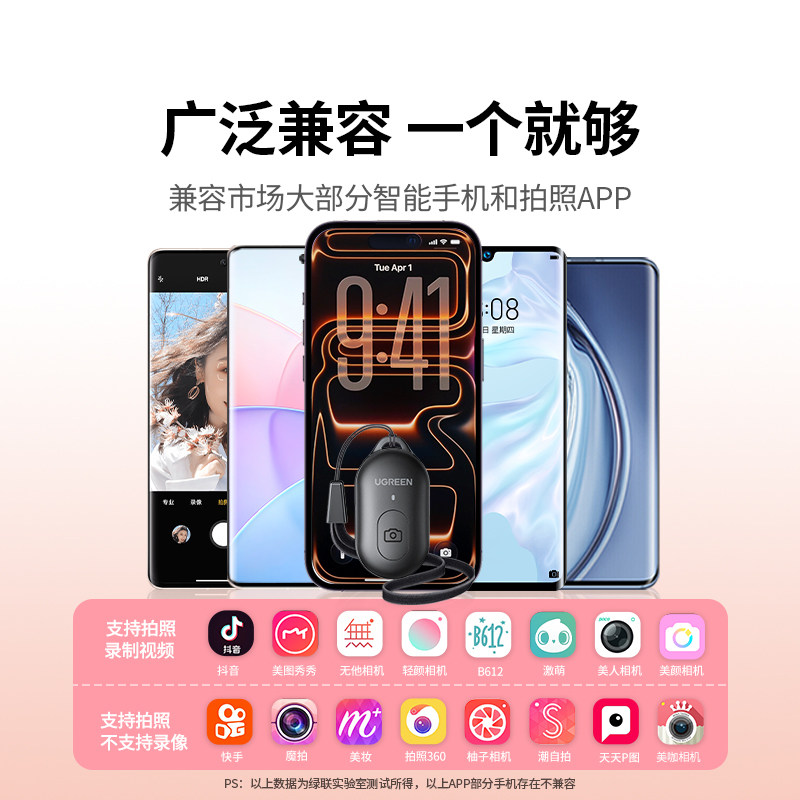 绿联手机蓝牙自拍遥控器10米远程遥控拍照短视频录制多功能无线按钮自拍杆拍摄控制器电池通用神器配件长续航