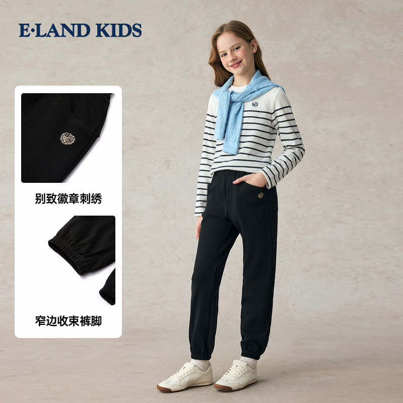 【100%棉】eland kids衣恋童装女童裤子秋冬季休闲裤运动束脚裤