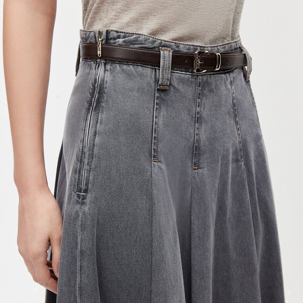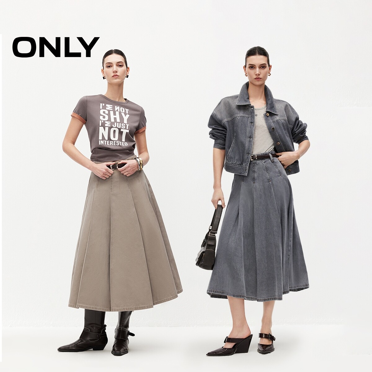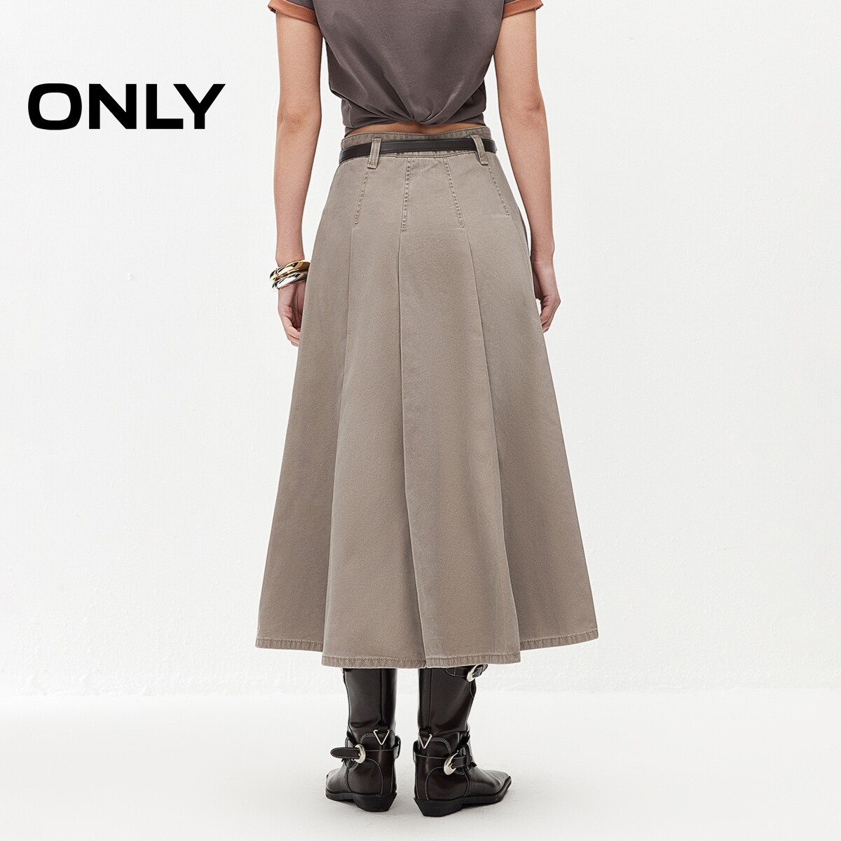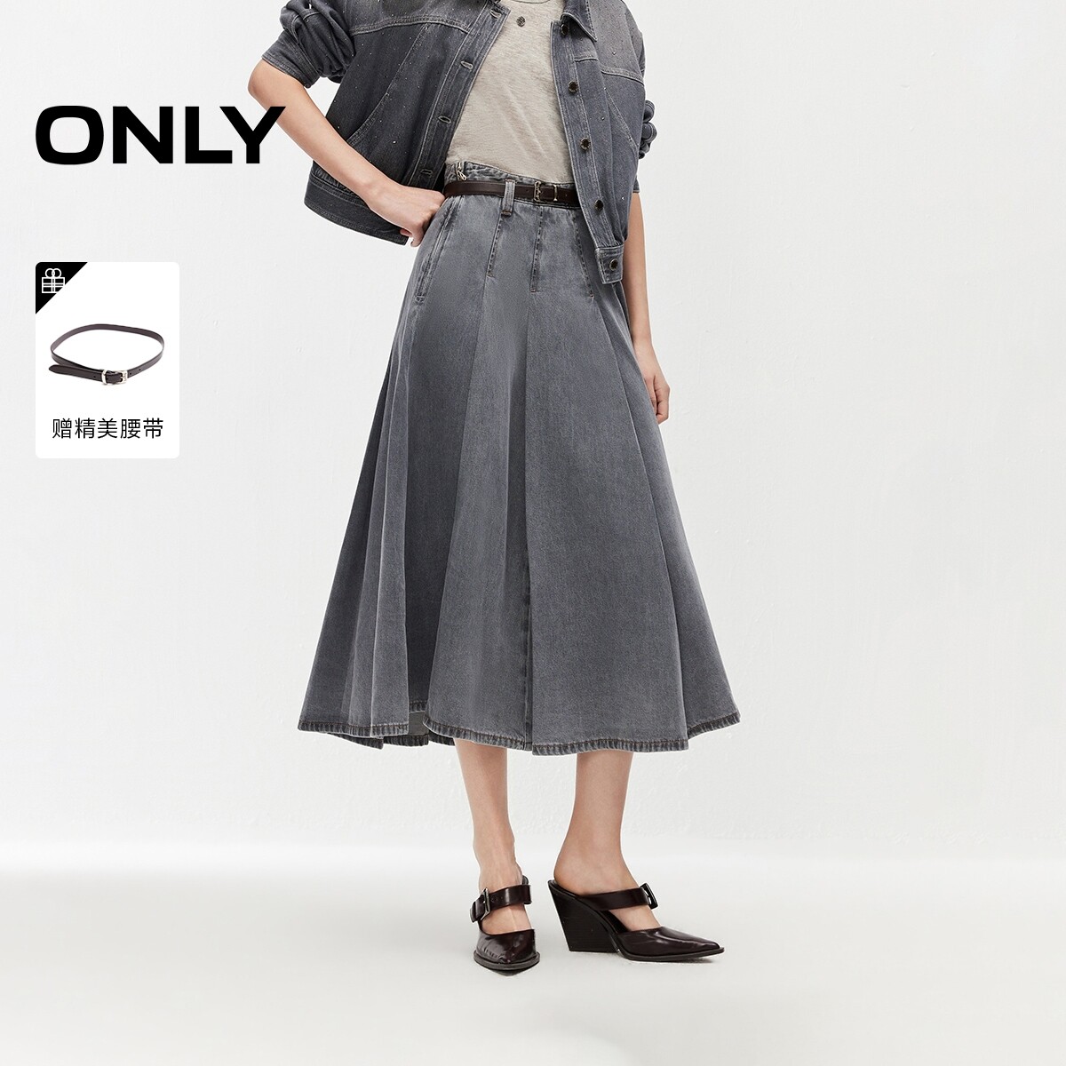 ONLY2026春季新款优雅通勤纯棉复古遮肉伞裙中长裙牛仔半身裙女