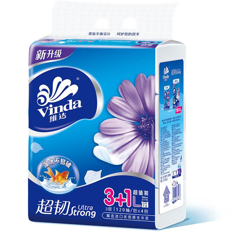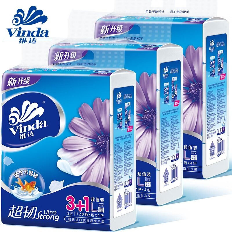 【爆卖100万件】维达抽纸超韧3层120抽20包整箱家用家庭实惠餐纸