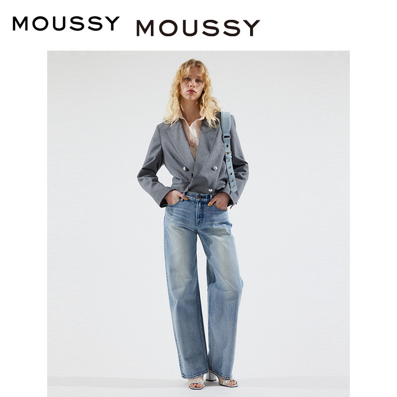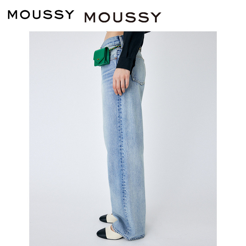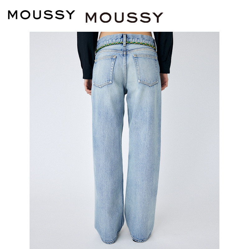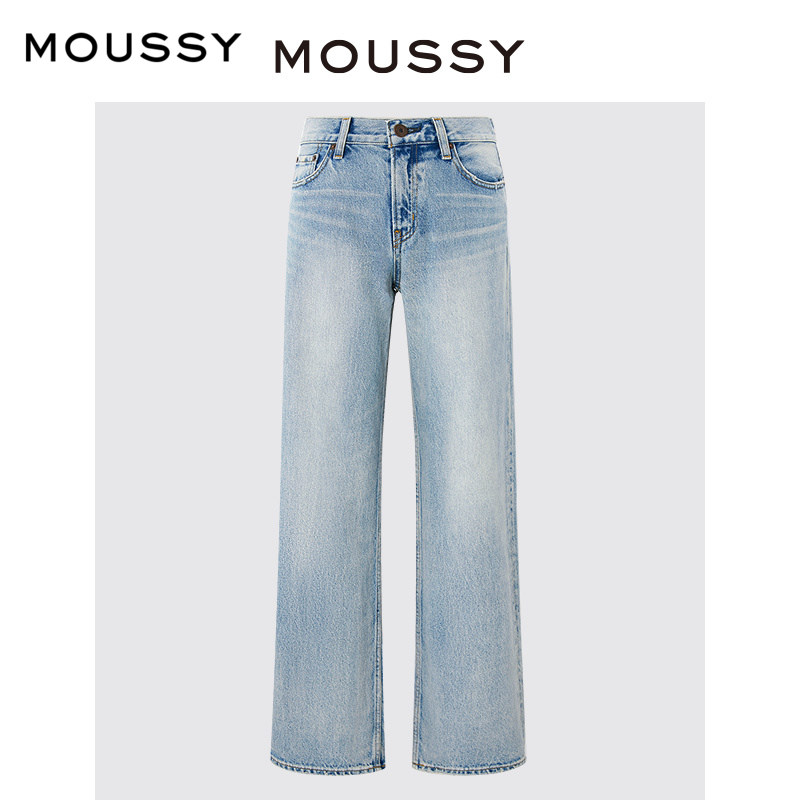 moussy秋季水洗浅蓝色低腰宽松直筒牛仔裤010GAA11-5480