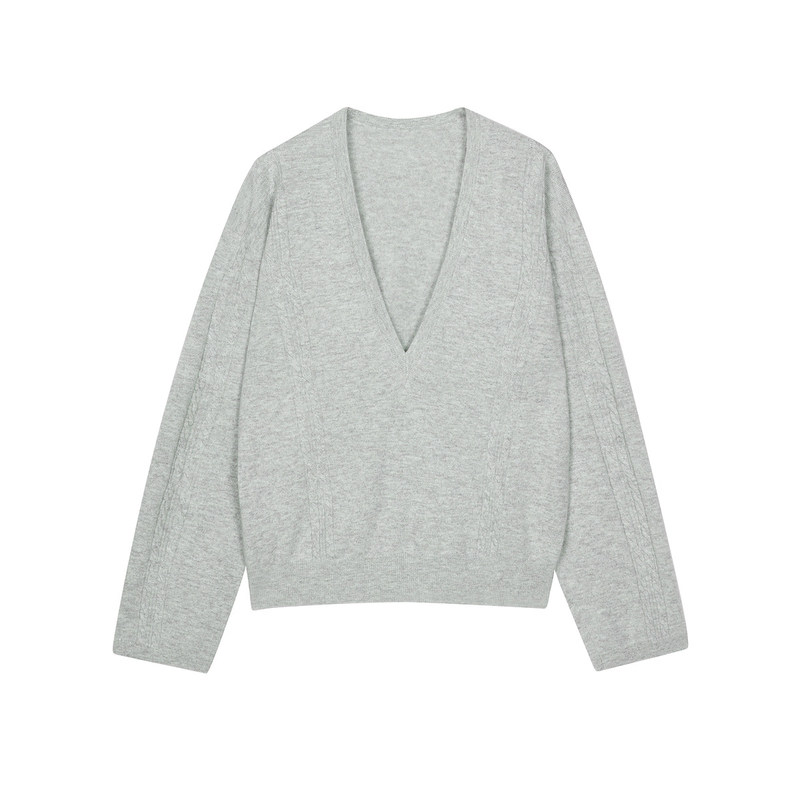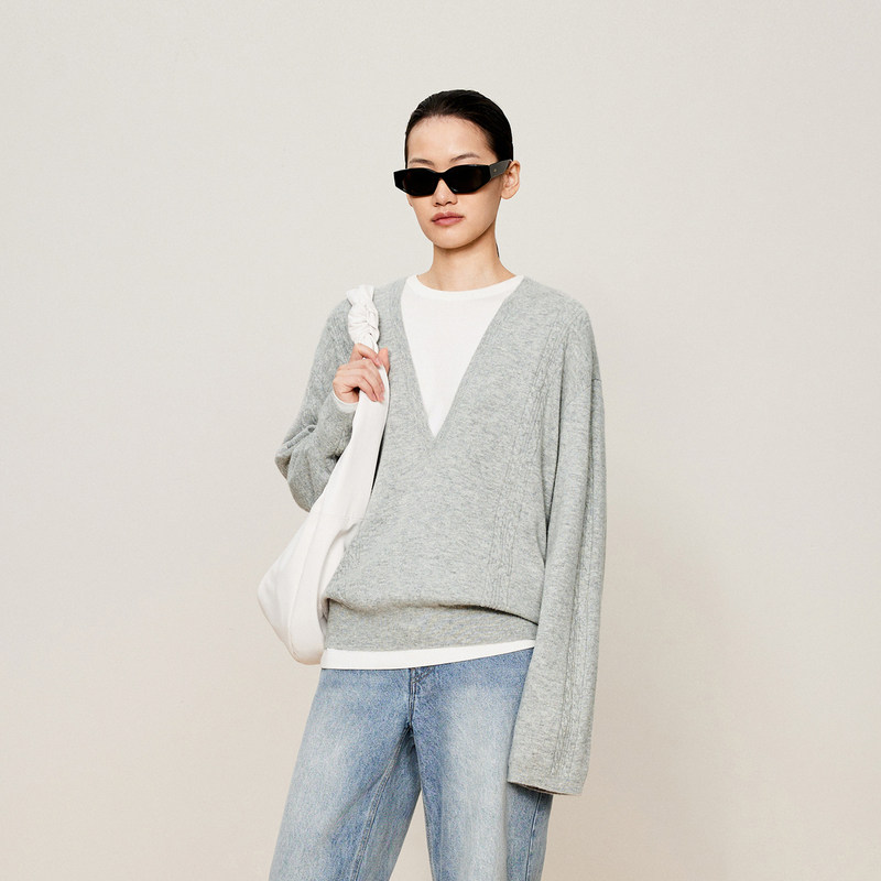 LESS冬深V领时尚舒适毛针织衫女休闲优雅含羊绒套头毛衫2O0313320