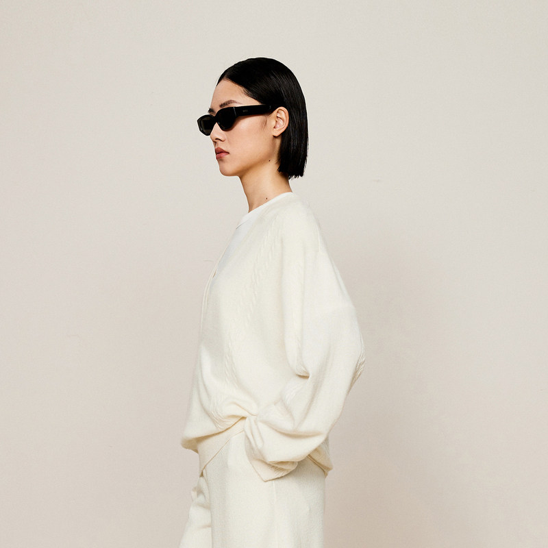 2025春秋开衫外套圆领宽松短款长袖毛衣外搭针织打底羊毛衫黑色女