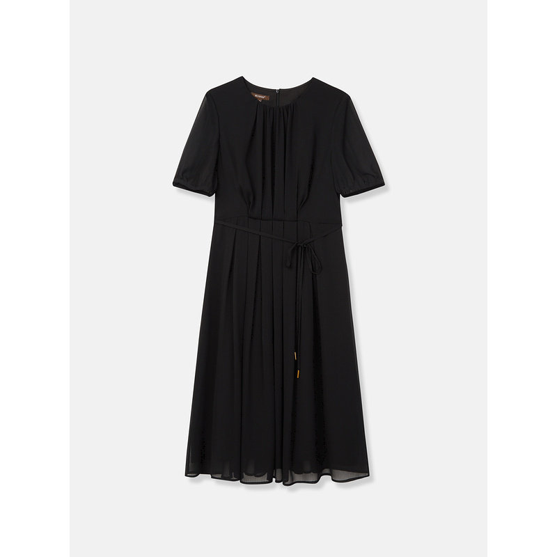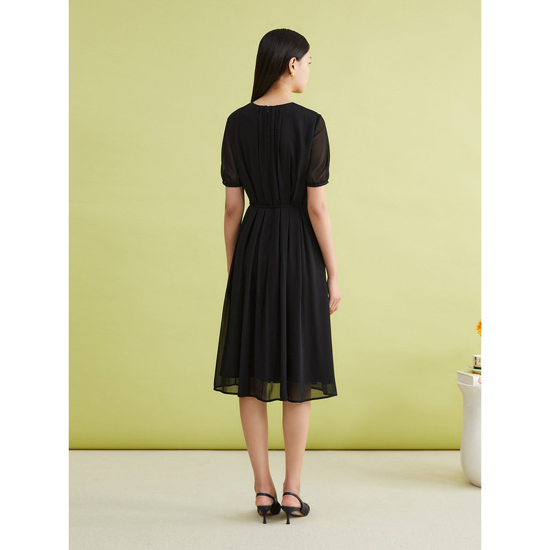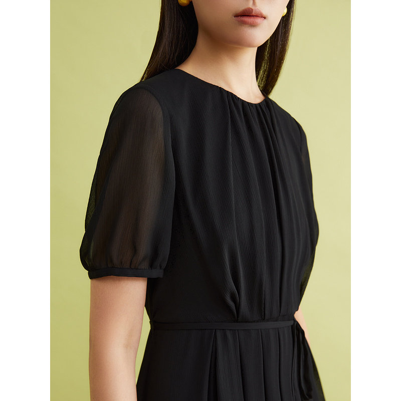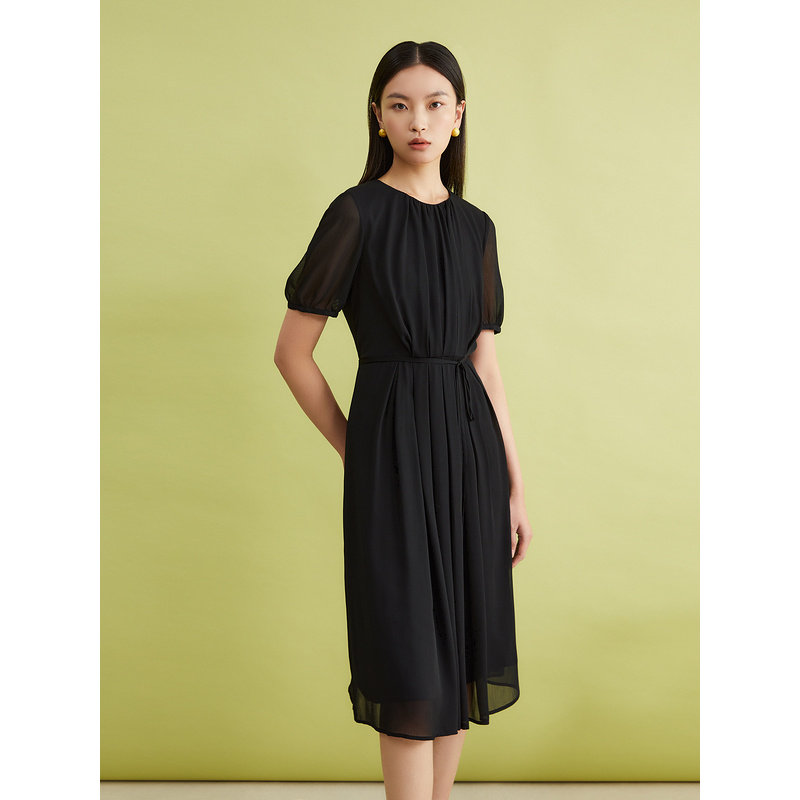 YINER音儿专选夏季法式优雅压褶工艺小黑裙垂顺优雅连衣裙