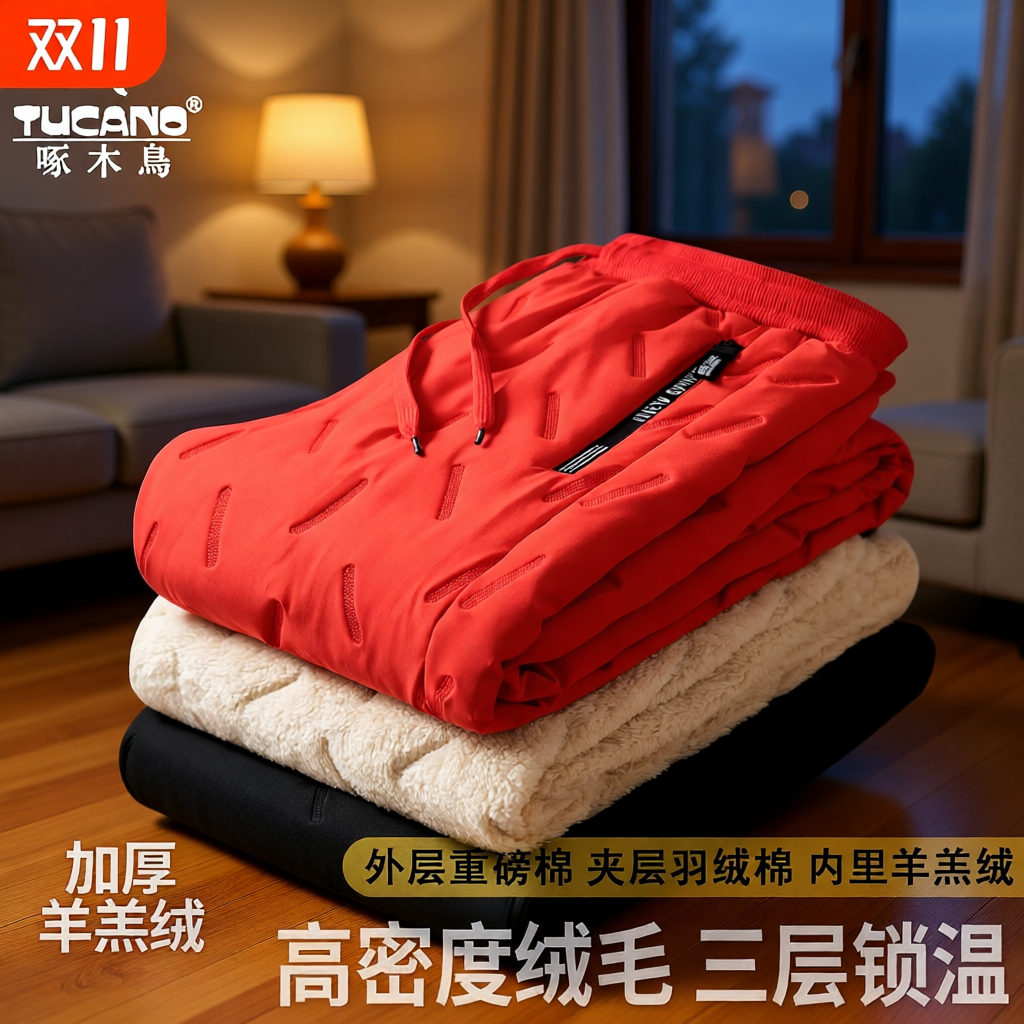 啄木鸟棉裤女冬季加绒加厚2025新款外穿东北中老年人羊羔绒裤子女