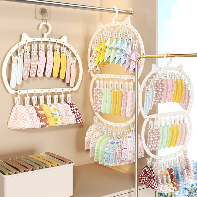 多夹子儿童衣架婴儿宝宝挂衣架多功能袜子晾晒架家用收纳神器双层