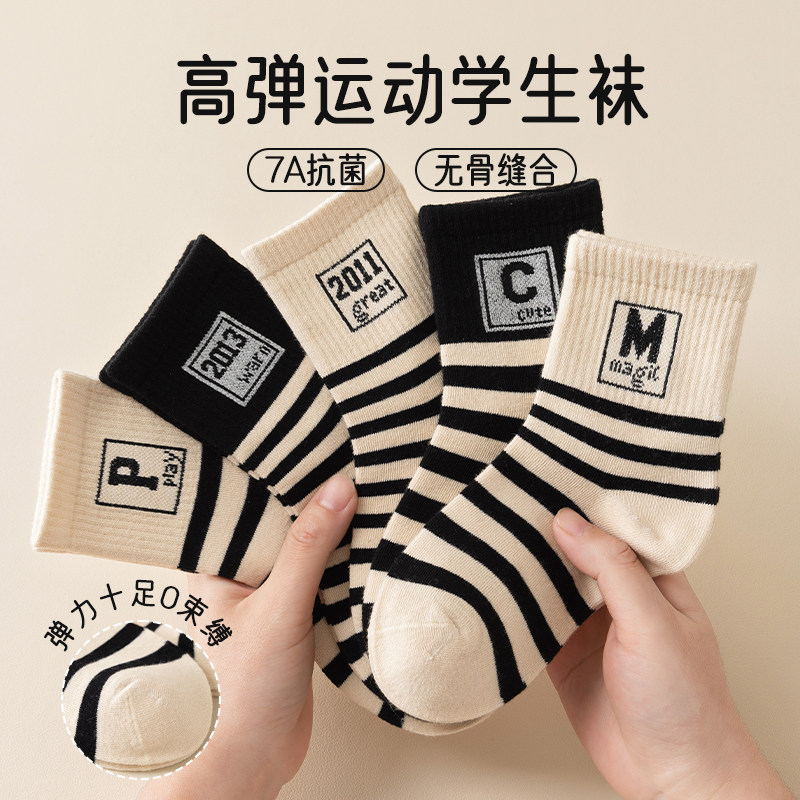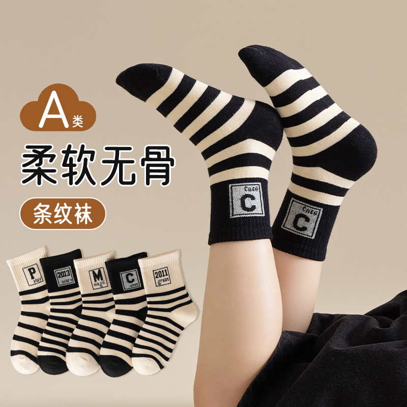 纯棉童袜春秋款夏季薄款防臭不起球男女袜子全棉中筒袜时尚儿童袜