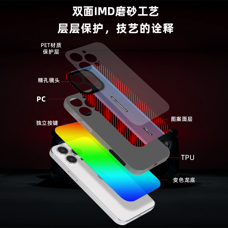 适用iPhone17promax镭射手机壳碳纤维纹壳苹果11硅胶保护套12全包防摔超薄软壳潮牌个性镜头秒变保时捷渐变色