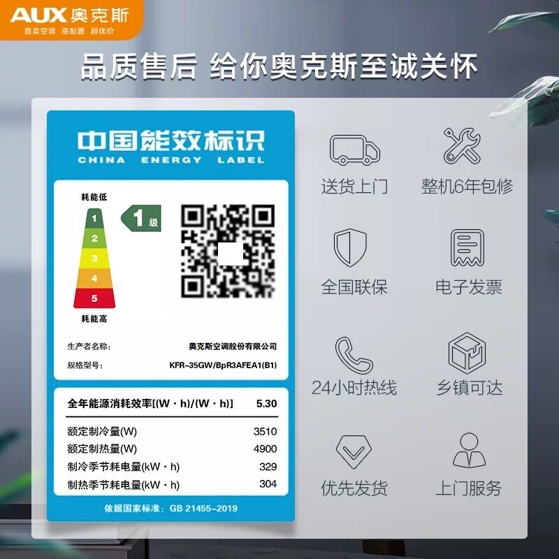 AUFIT空调奥克斯出品1.5匹挂机3匹柜机新一级能效变频省电官方