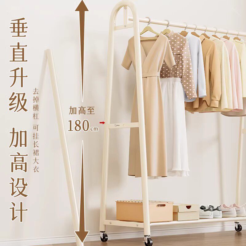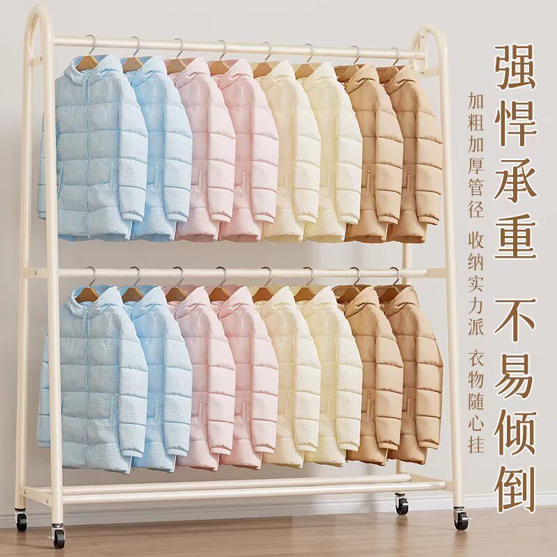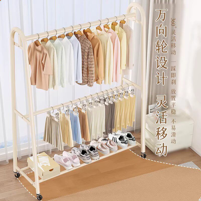 双层衣架落地衣帽架可移动家用挂衣架子卧室单杆置地式晾衣架室内
