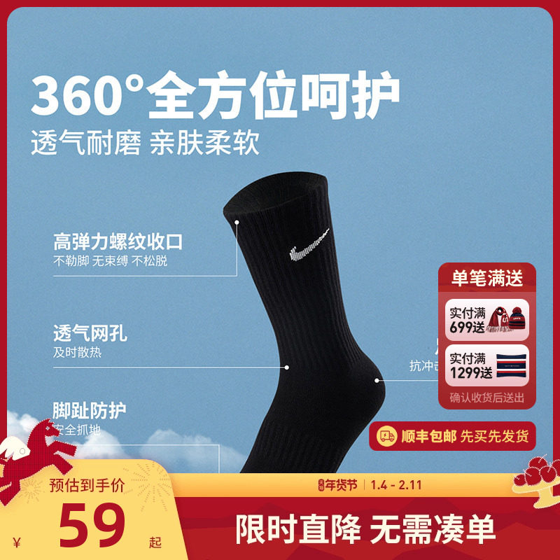 Nike 3brand学生袜子男女童运动袜长袜2025夏季新款透气薄款棉袜