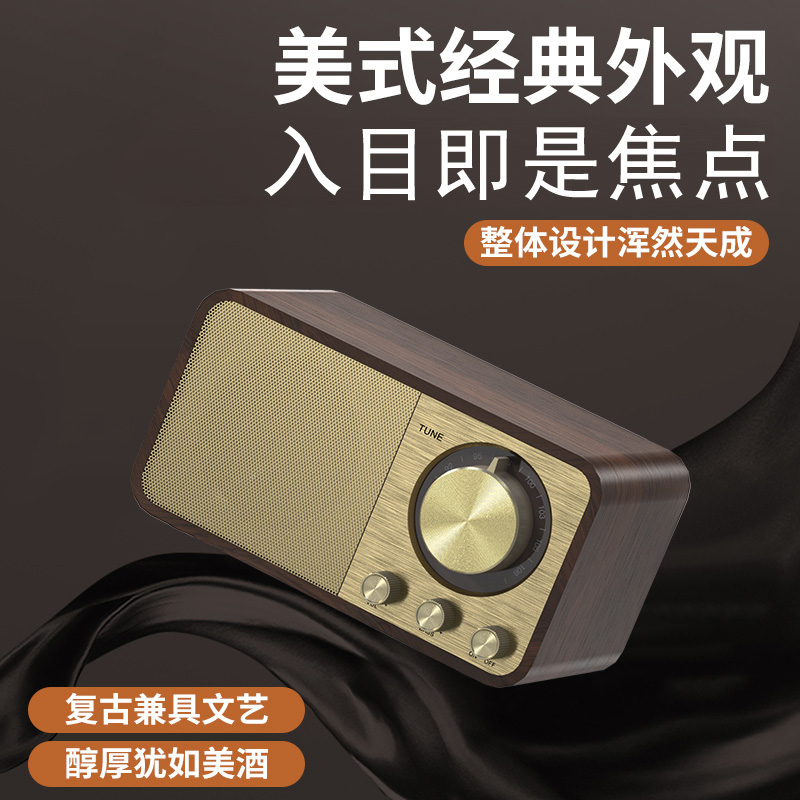 蓝牙音箱低音炮木制无线户外家用桌面高音质音响小型复古收音机