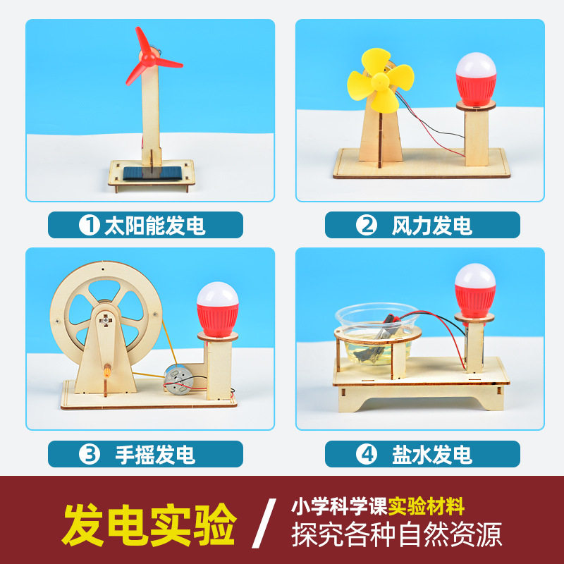 儿童科技小制作盐水太阳能手摇发电材料包科学实验diy手工小套装