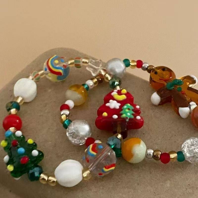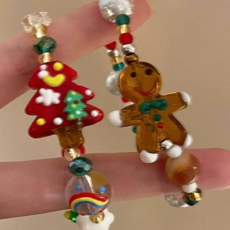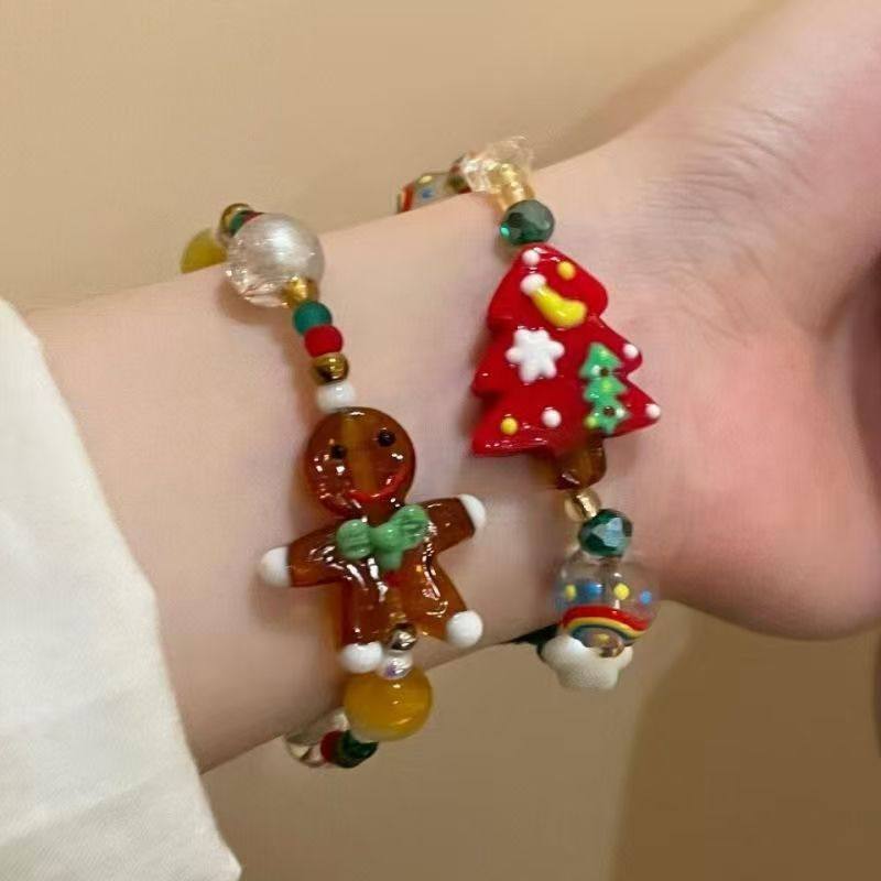 圣诞系列手绳圣诞树吊坠手饰品姜饼人圣诞编织手链小红书同款
