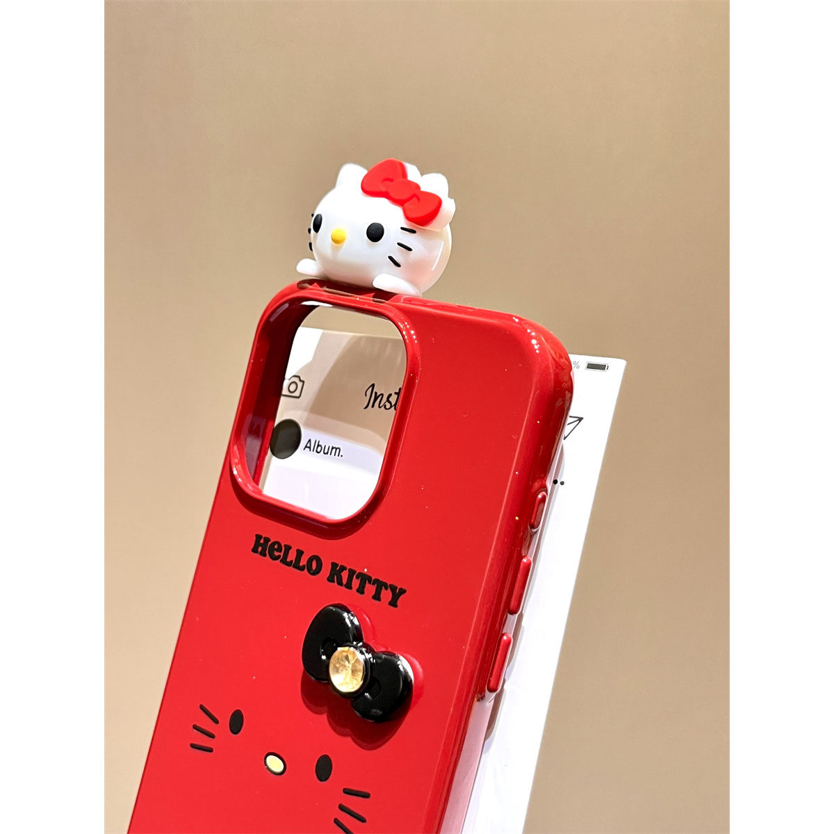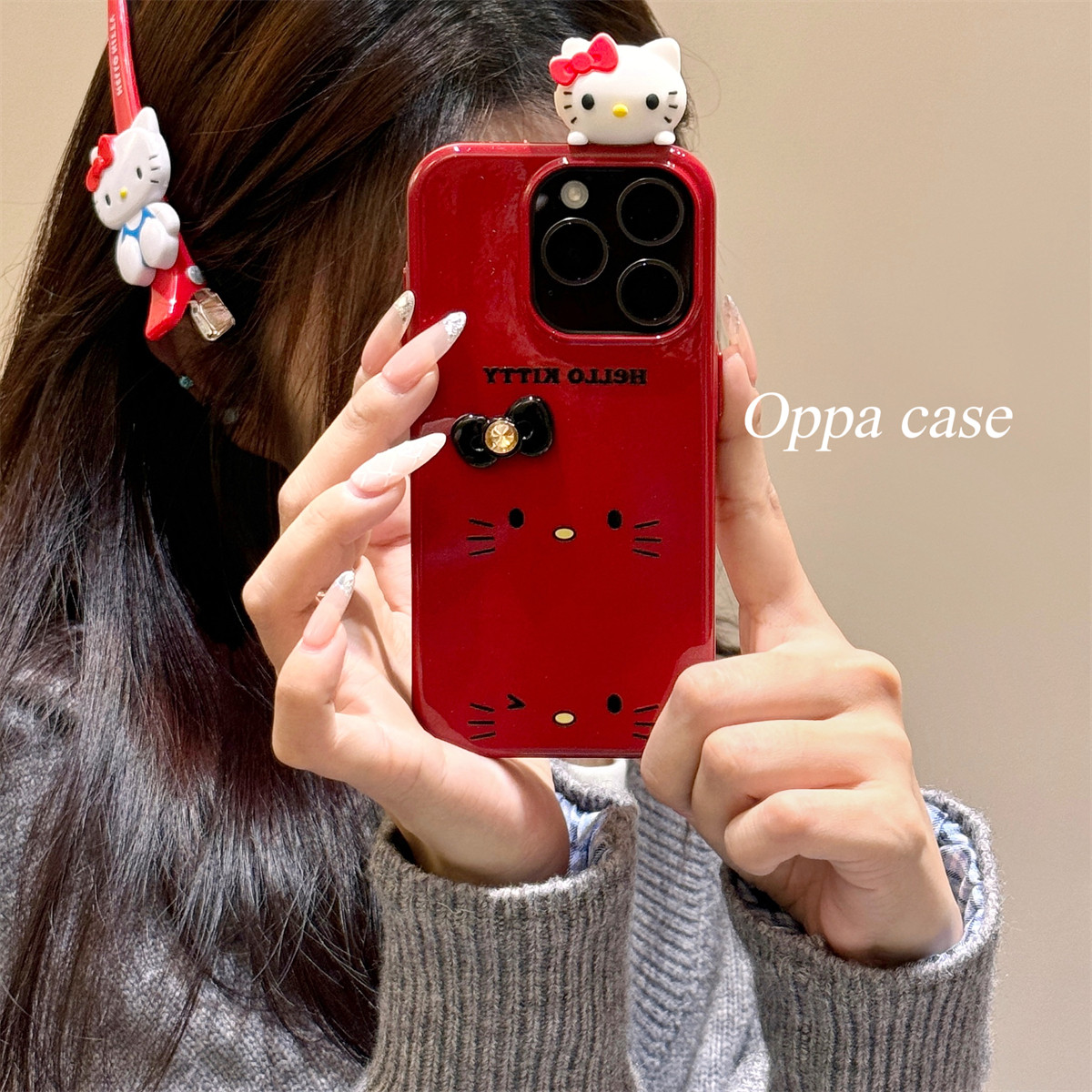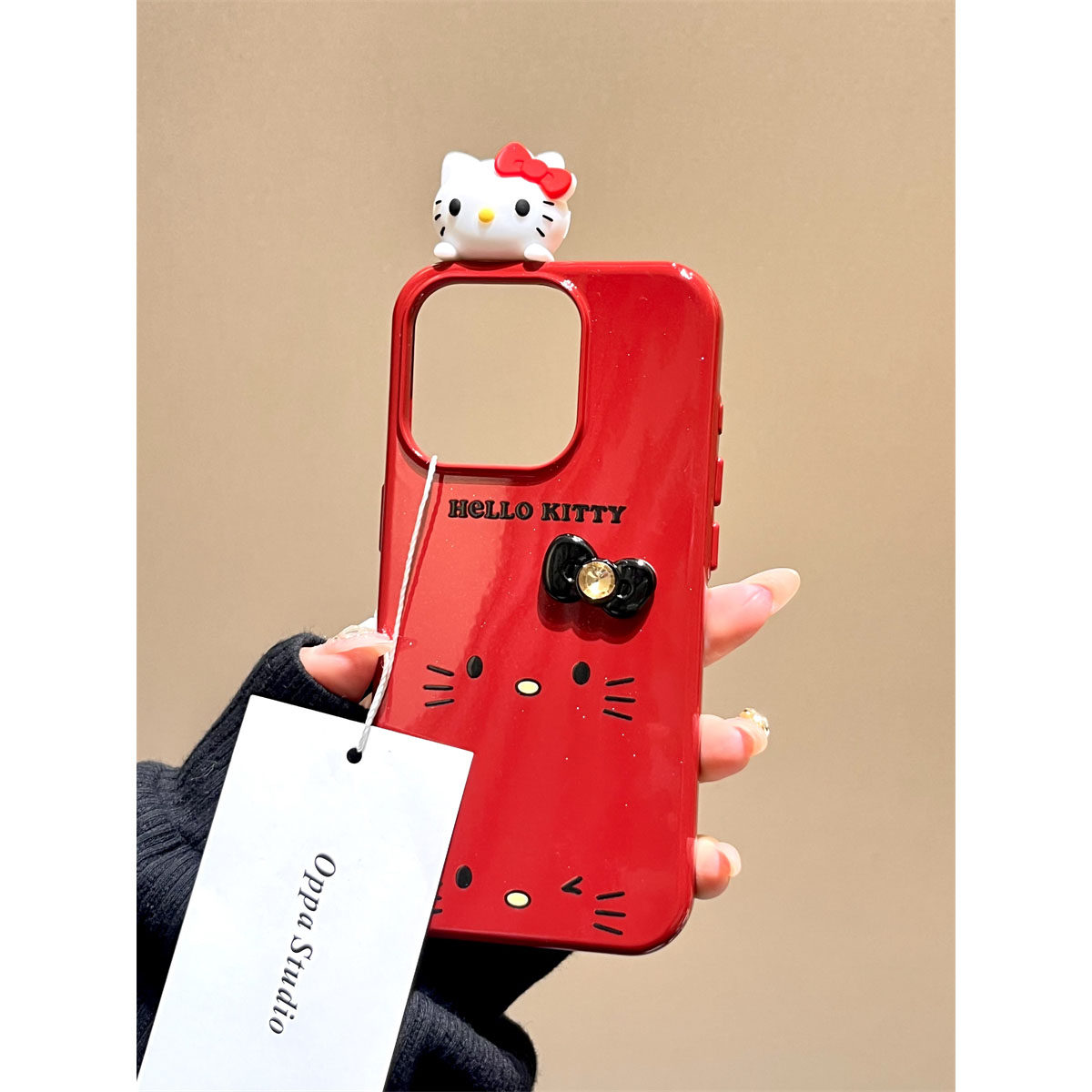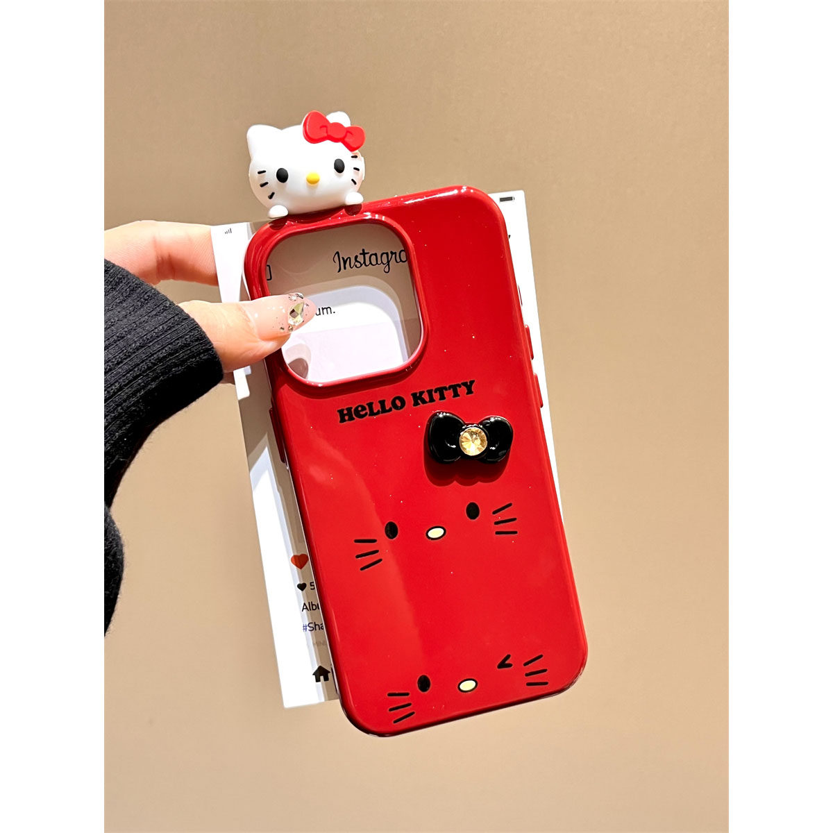 红色卡通猫咪立体蝴蝶结趴趴适用苹果16promax手机壳iphone13新款15pro女款14全包防摔保护套