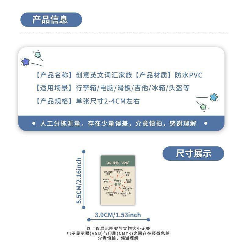 128张英语单词装饰贴纸diy创意学习词汇家族玩趣校园记忆防水贴画