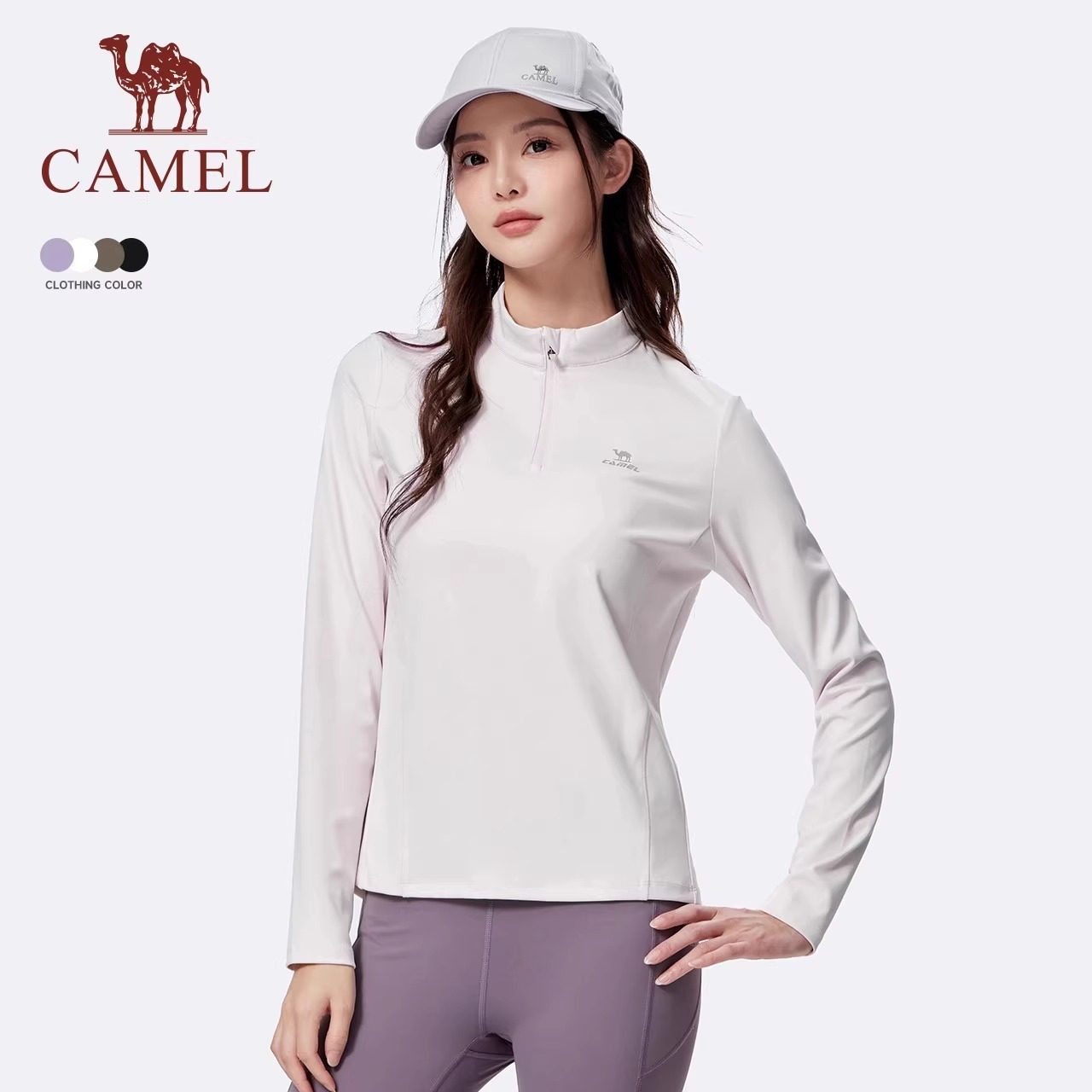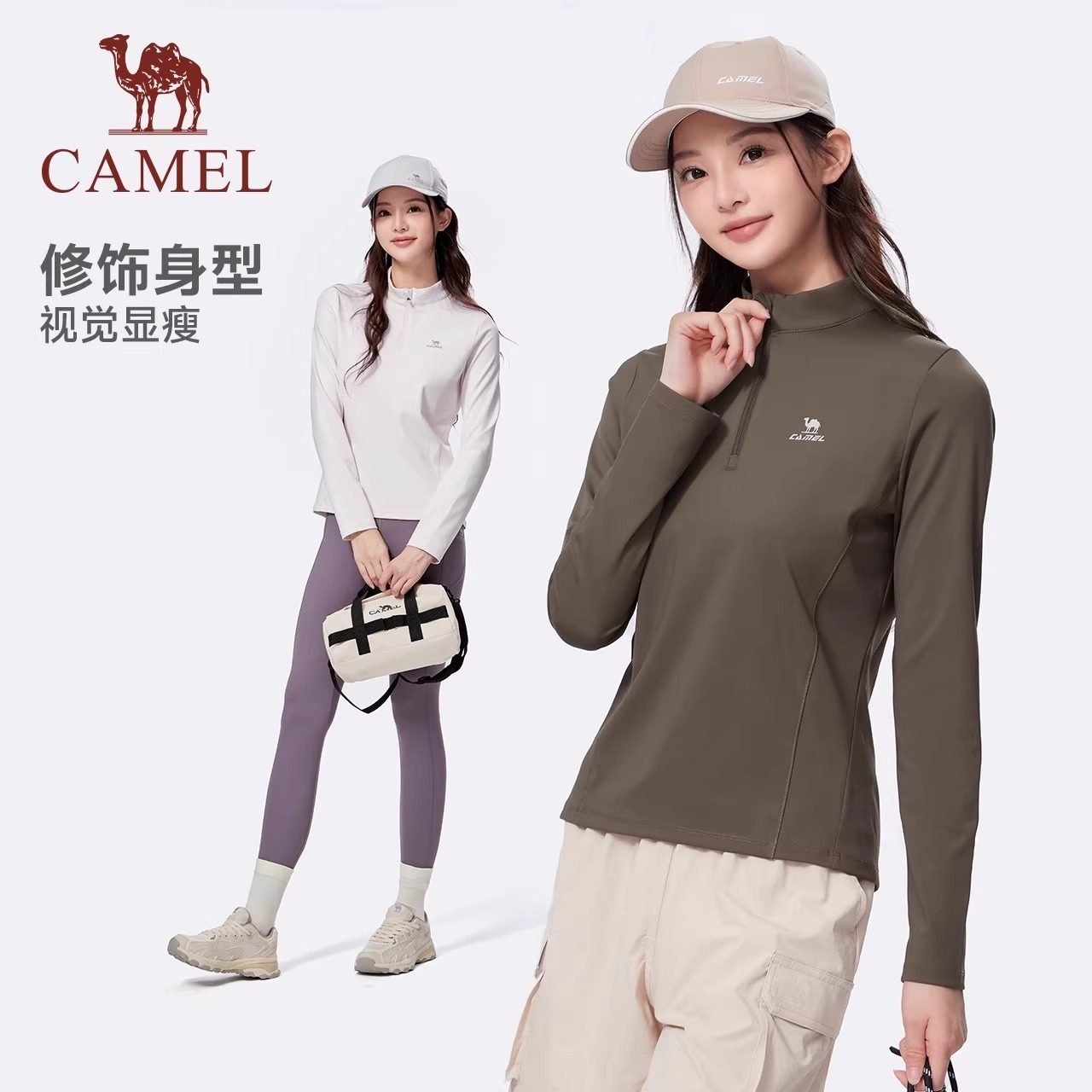 Camel骆驼运动速干衣女2025夏新款立领长袖T恤训练服跑步健身上衣