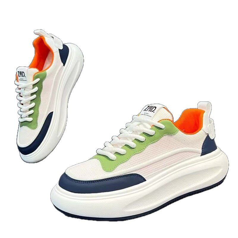 男鞋2026新款网面透气小白鞋潮流百搭低帮鞋厚底增高鞋舒适休闲鞋