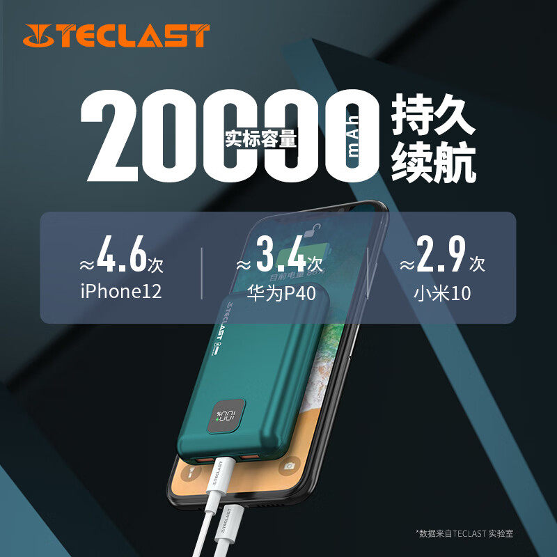 TECLAST充电宝22.5W双向快充20000毫安时可上飞机大容量超薄移动电源 适用苹果16华为小米安卓手机